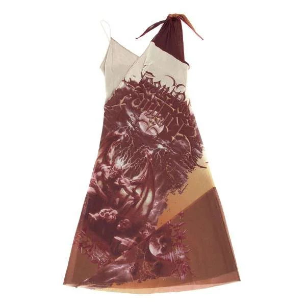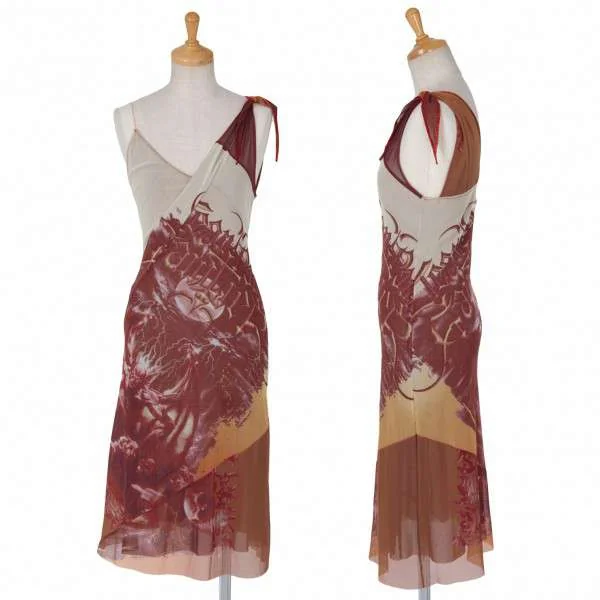 ジャンポールゴルチエ ファム Jean Paul GAULTIER FEMME デビル柄パワーネットキャミワンピース エンジ40