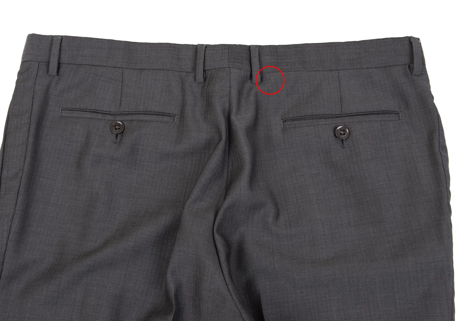 品質表示がありません。ウエストに小さな引っ掛けがあります(写真参照)。 その他目立ったシミ、汚れ、ほつれ等なくいい状態です。クリーニング済み。