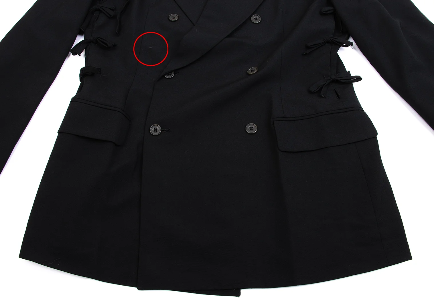 前生地表面に穴があります(写真参照)。その他目立ったシミ、汚れ、ほつれ等はありません。クリーニング済み。