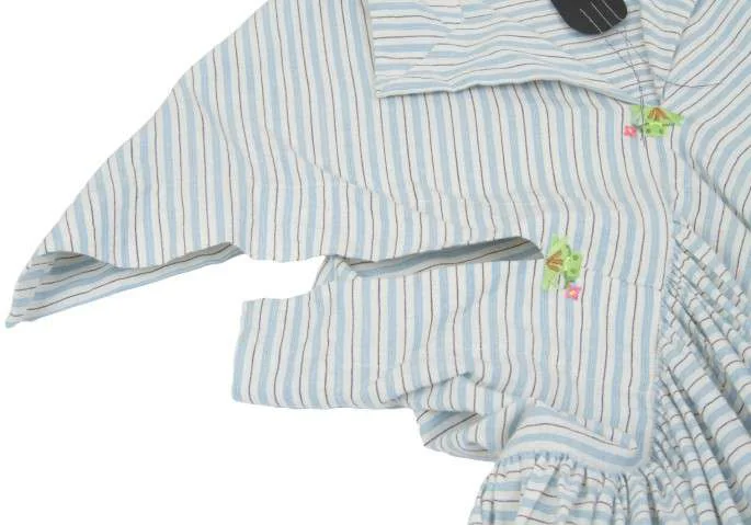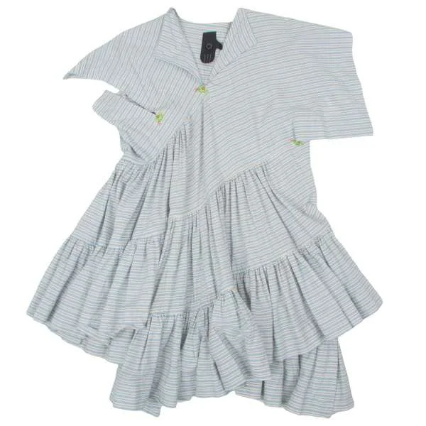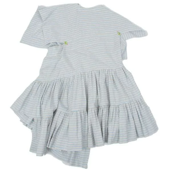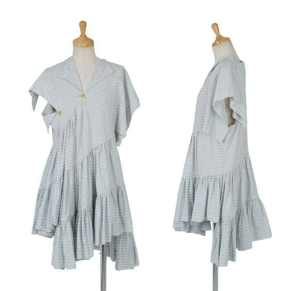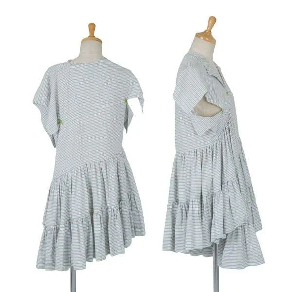 ベルンハルト ウィルヘルムBernhard Willhelm コットンリネン切替デザインワンピース 生成青M