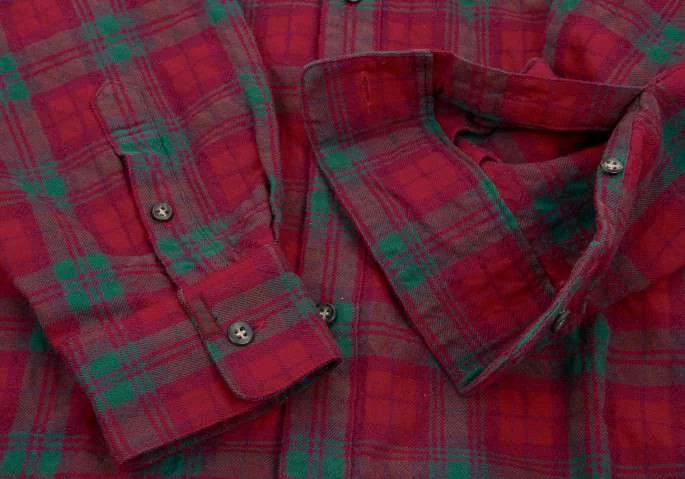 パパスpapas コットンウールチェックネルシャツ 赤緑50