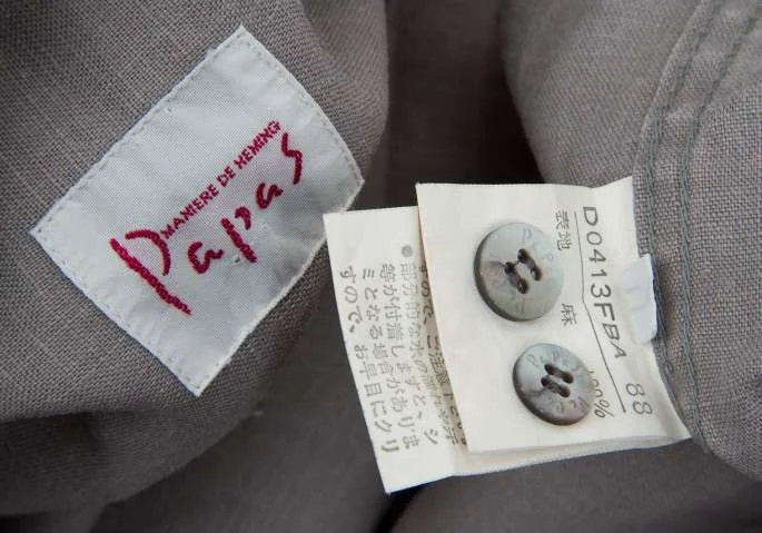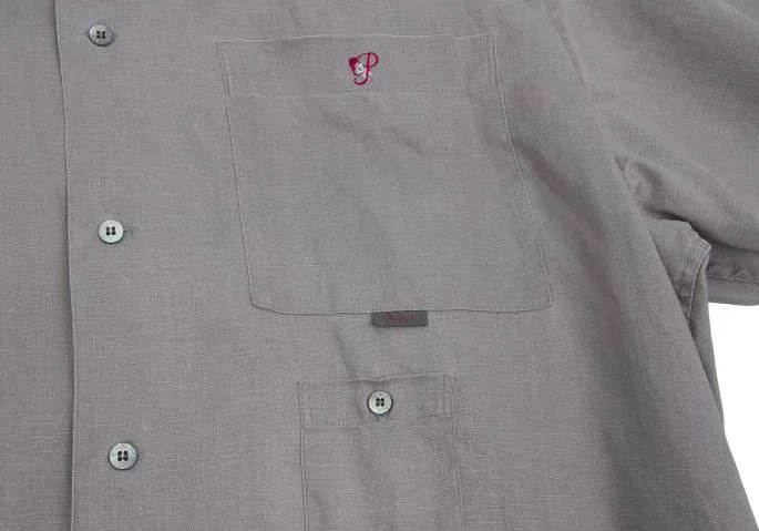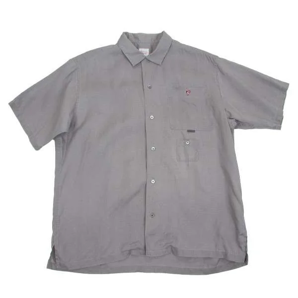 パパスpapas ポケットデザインリネン半袖シャツ 薄パープルL