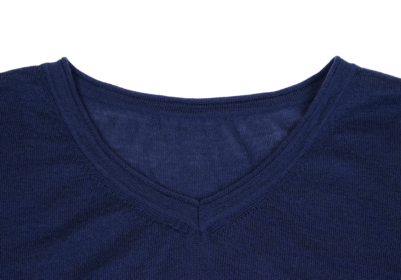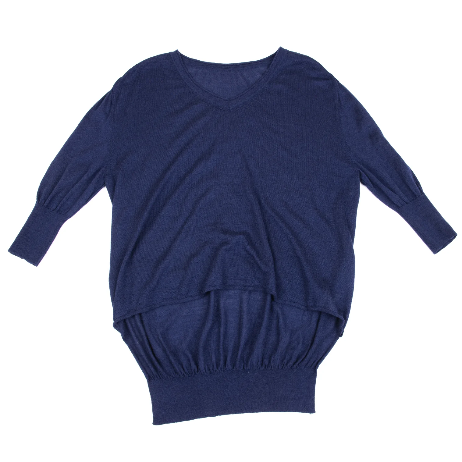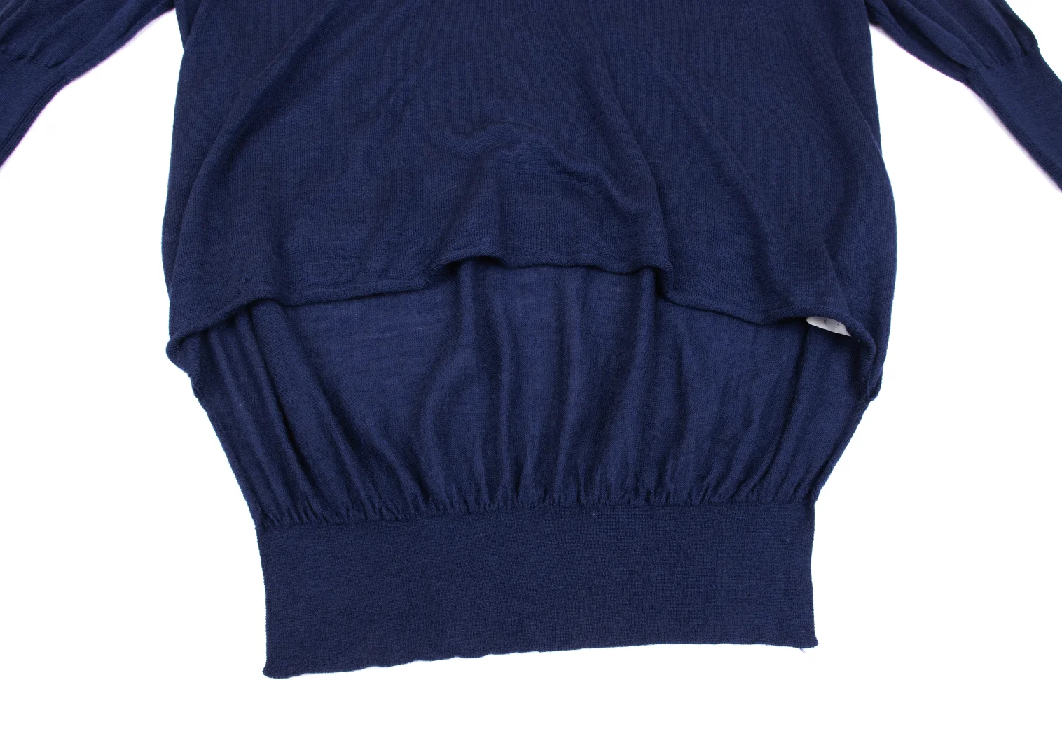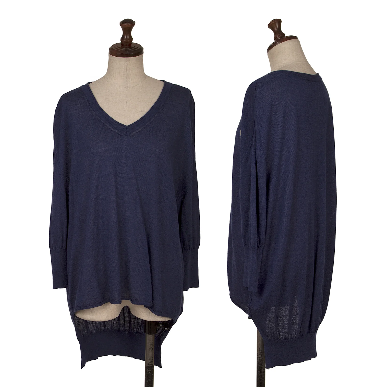 リスマット バイ ワイズRISMAT by Y's レーヨンウールバックロングVネックニット 青2