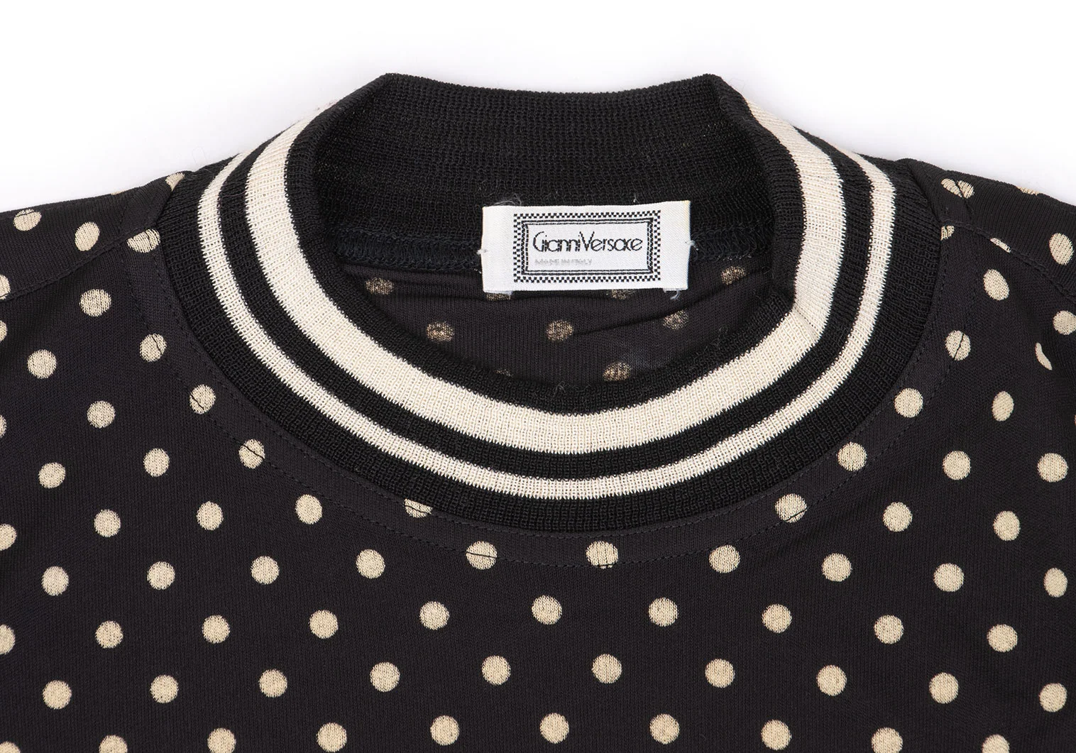 ジャンニヴェルサーチGIANNI VERSACE レーヨンコットンドットプリントカットソー 黒アイボリー46