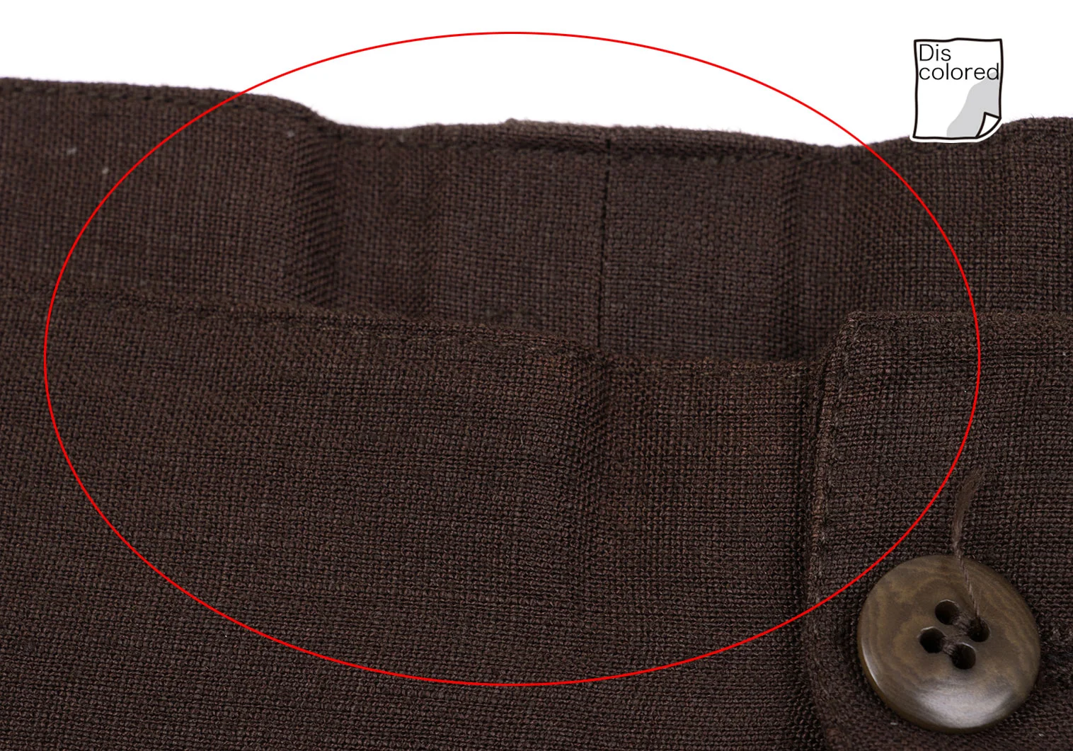 ウエストに変色があります(写真参照)。その他目立ったシミ、汚れ、ほつれ等なくいい状態です。クリーニング済み。