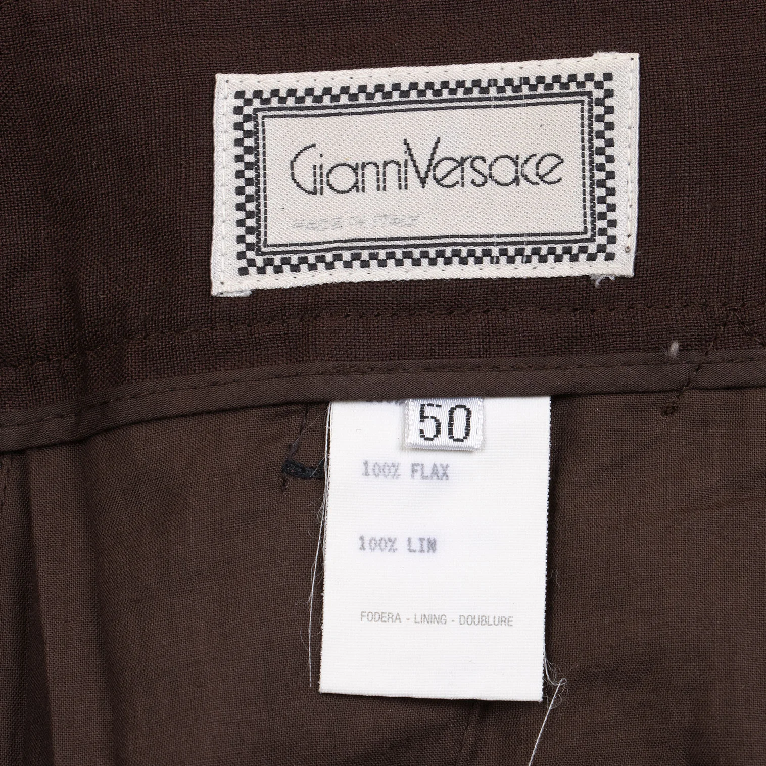 ジャンニヴェルサーチGIANNI VERSACE リネンワイドパンツ 茶50