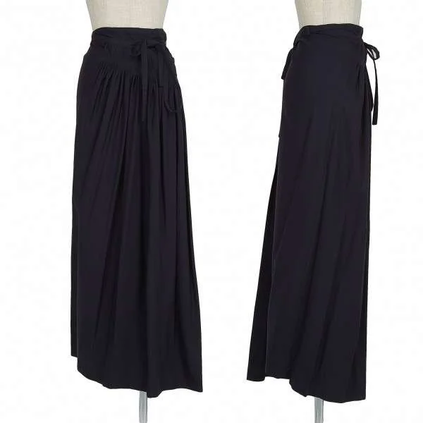 ヨウジヤマモト ファム yohji yamamoto FEMME タックデザインウールギャバラップスカート 紺2