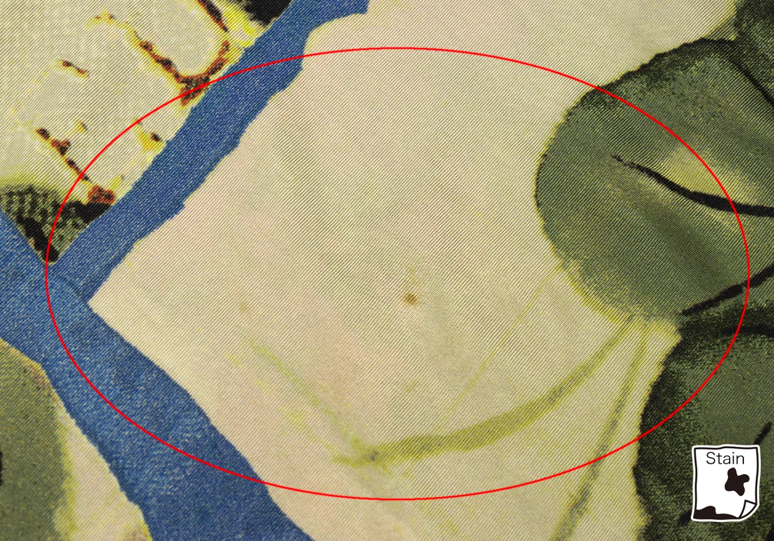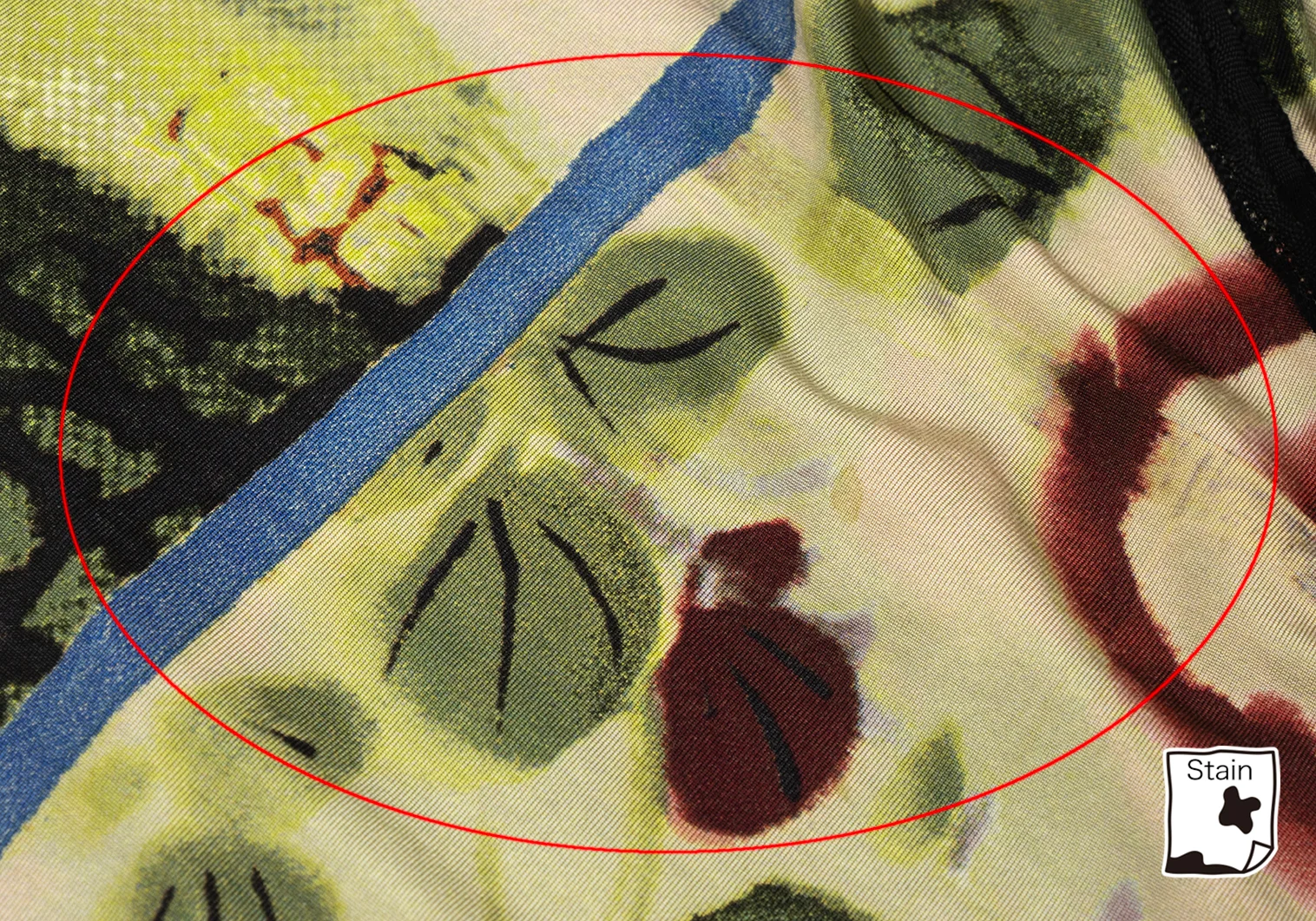前身頃にシミがあります(写真参照)その他目立ったシミ、汚れ、ほつれ等なくいい状態です。クリーニング済み。