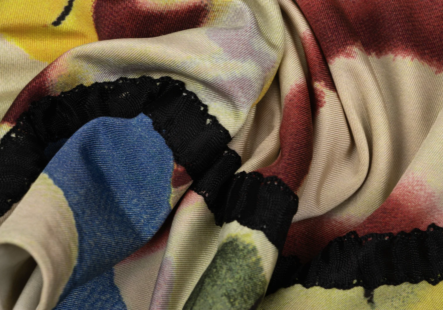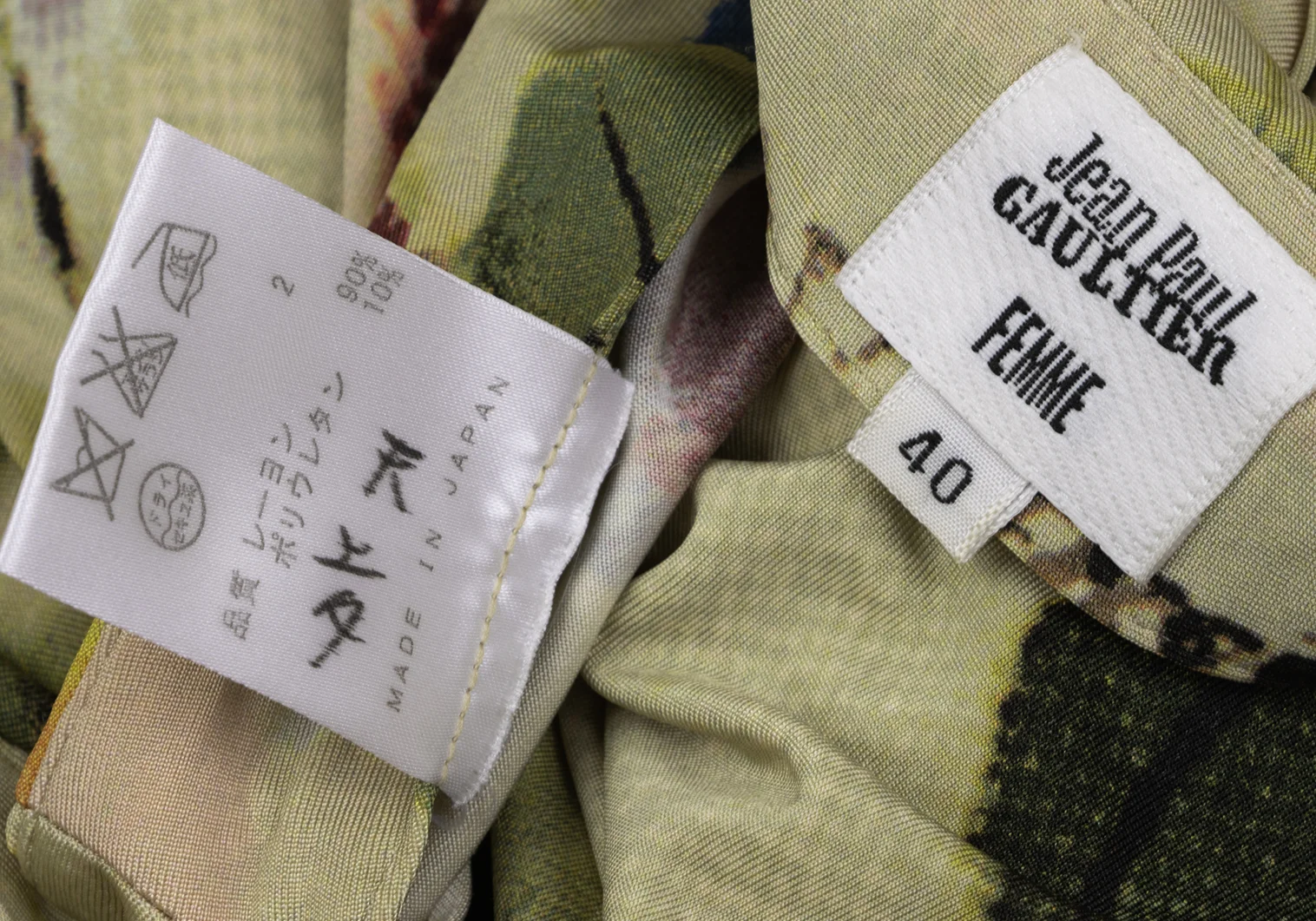 ジャンポールゴルチエ ファムJean Paul GAULTIER FEMME グラフィックプリントアシンメトリーストレッチスカート ベージュマルチ40