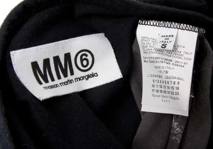 マルタンマルジェラMartinMargiela MM6 コットンレーヨン切替 四角カットソー 黒チャコールS