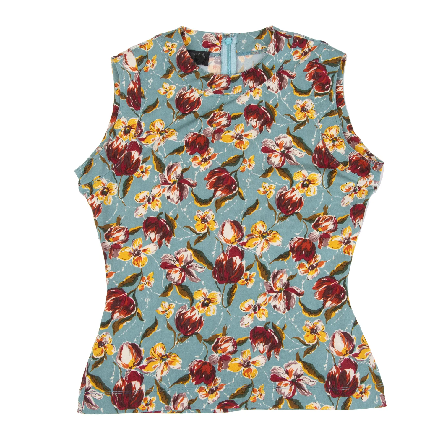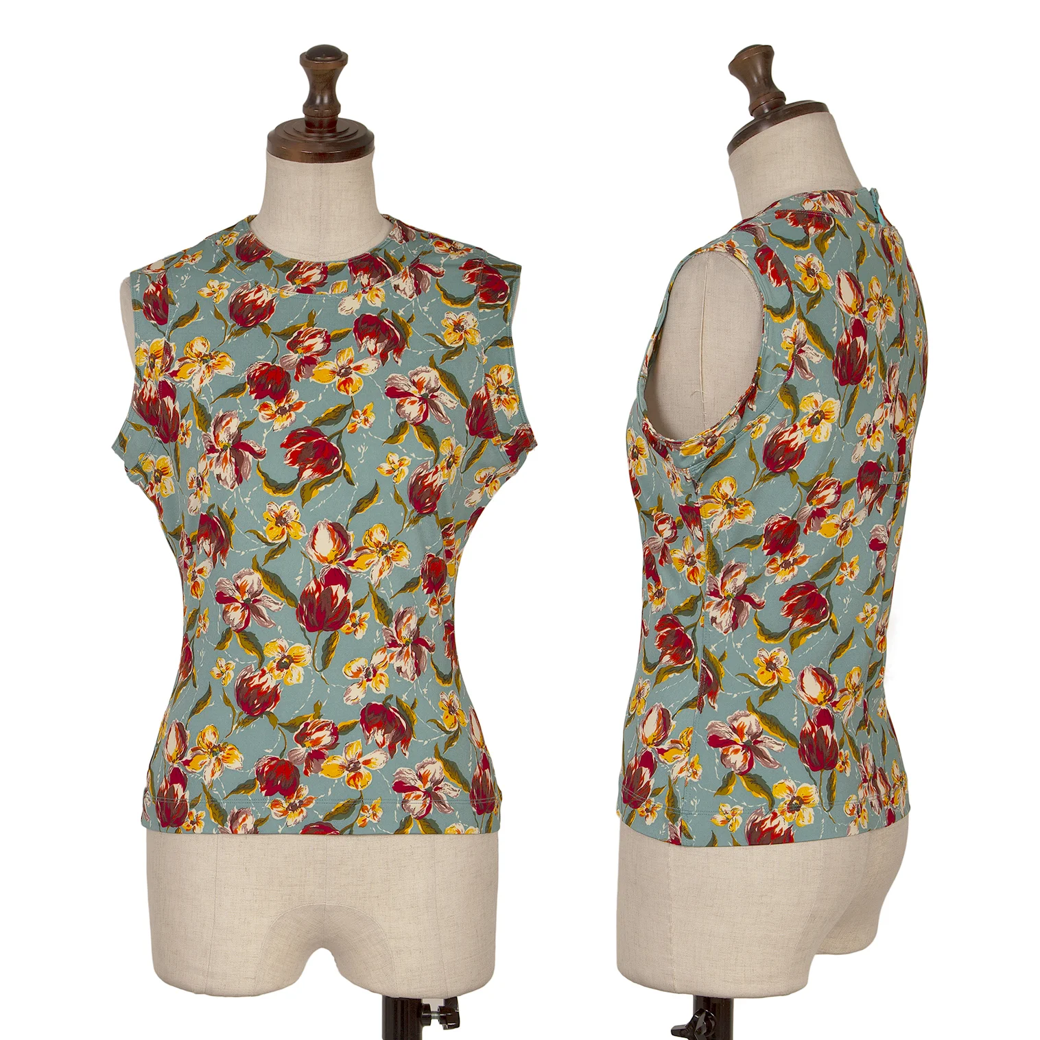 ジャンポールゴルチエ ファムJean Paul GAULTIER FEMME フローラルプリントストレッチノースリーブ 水色マルチ40
