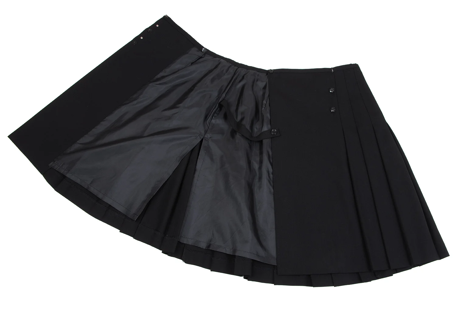 ジャンポールゴルチエ フォー セットプルミエJean Paul GAULTIER FOR SEPT PREMIERES ウールプリーツラップスカート 黒38