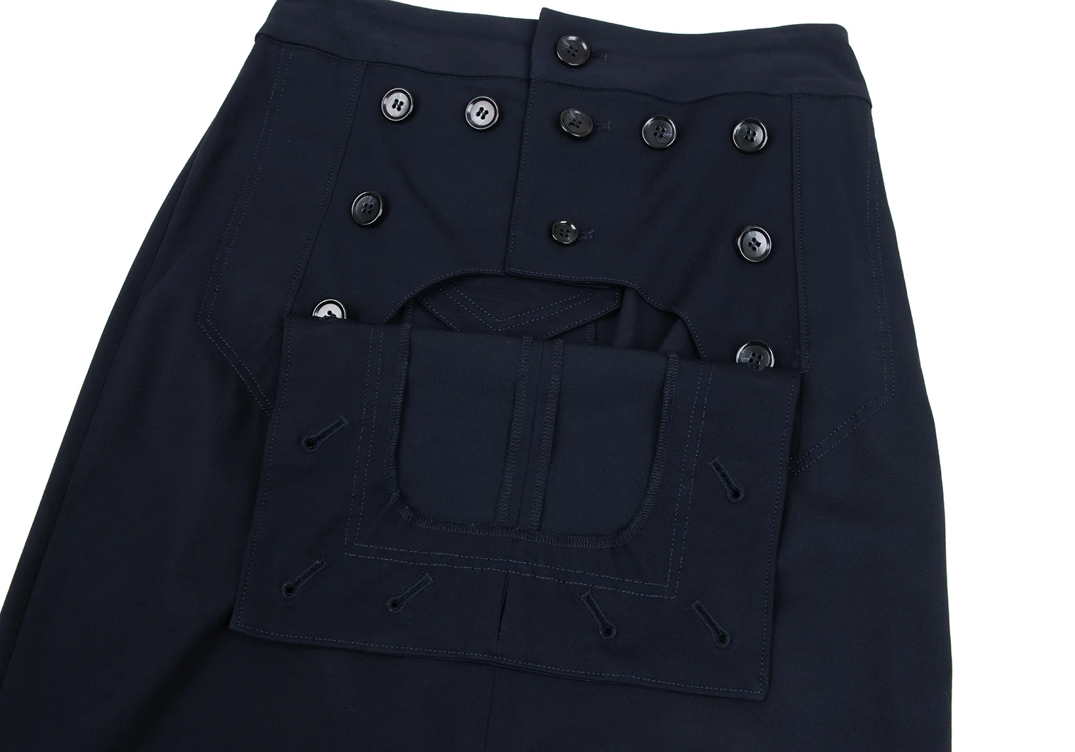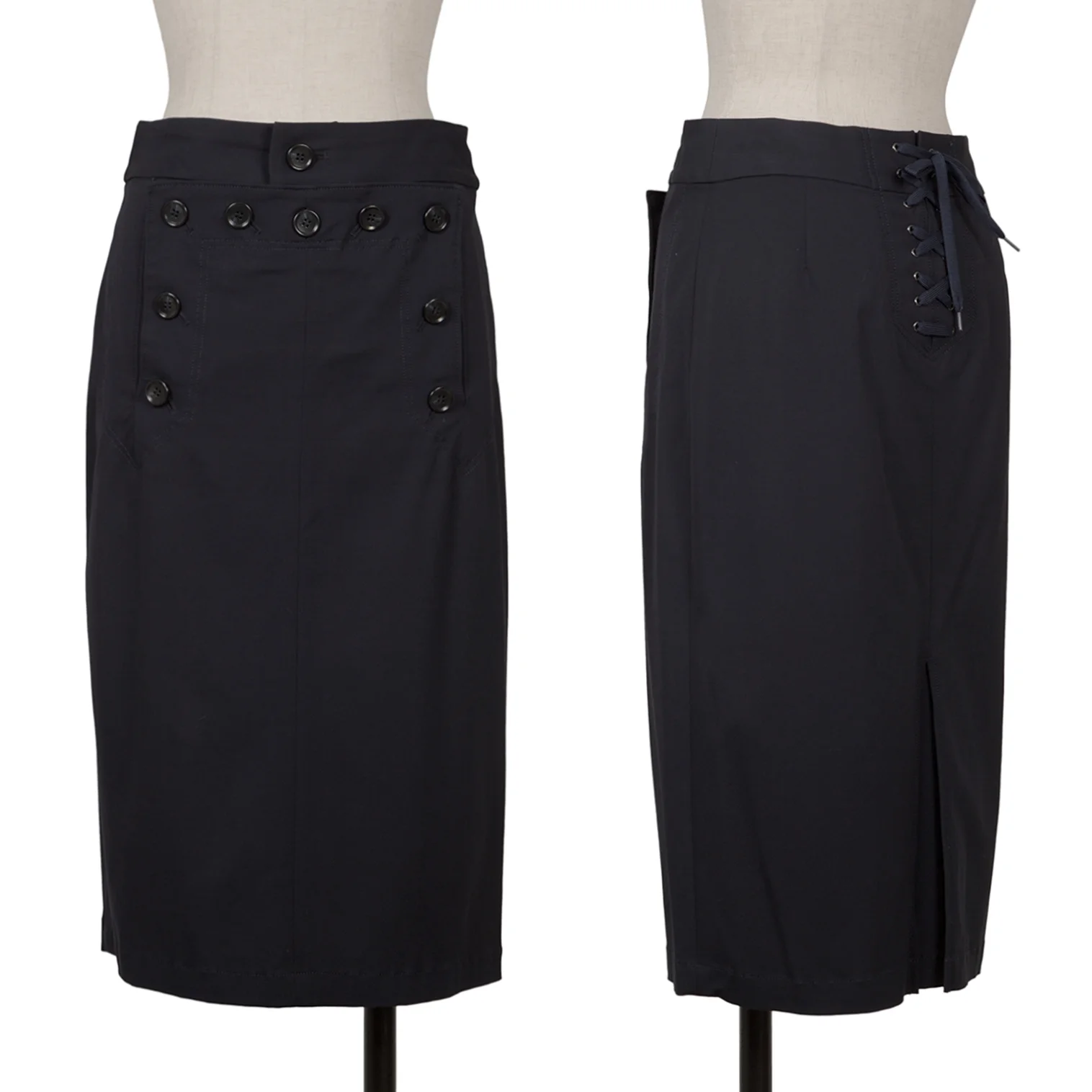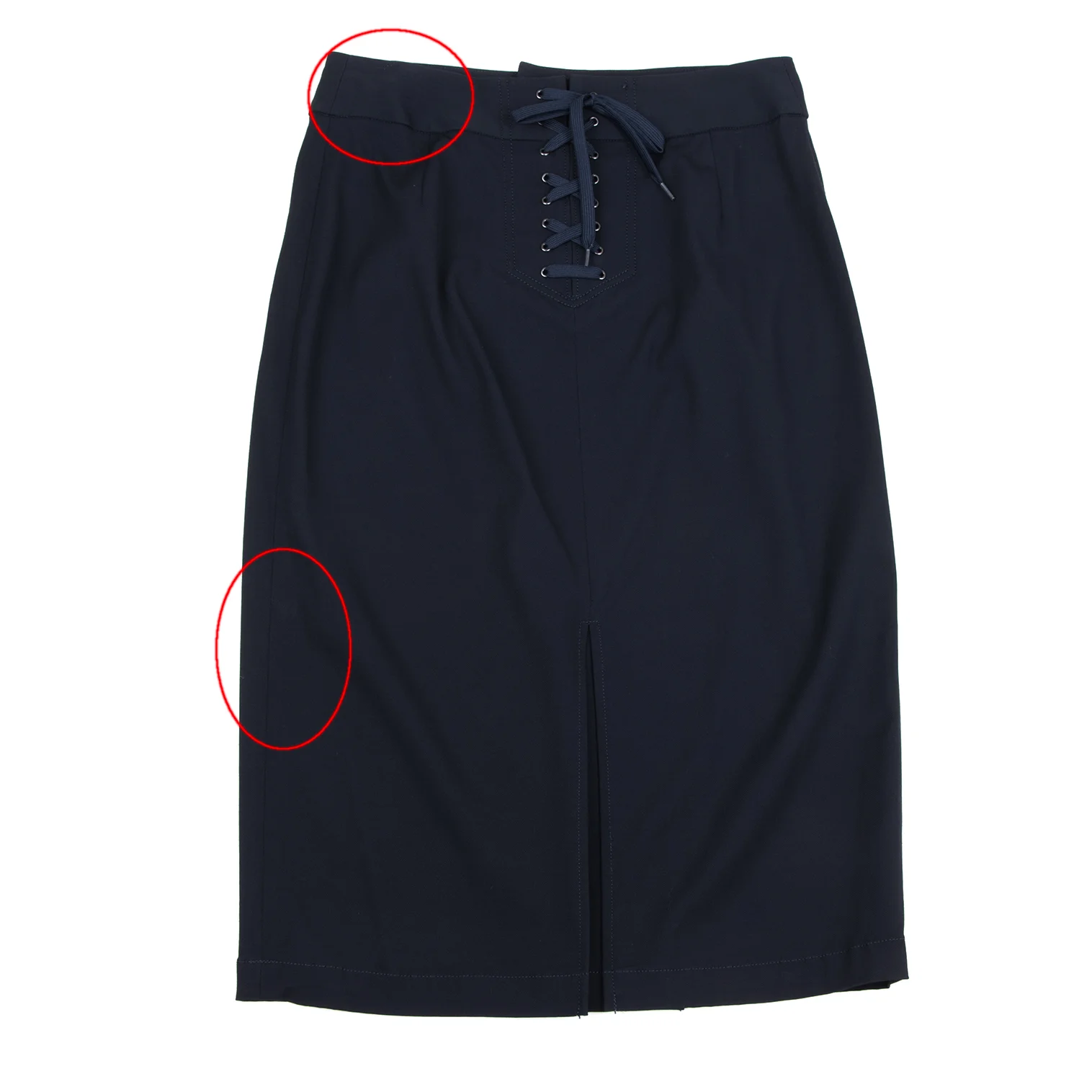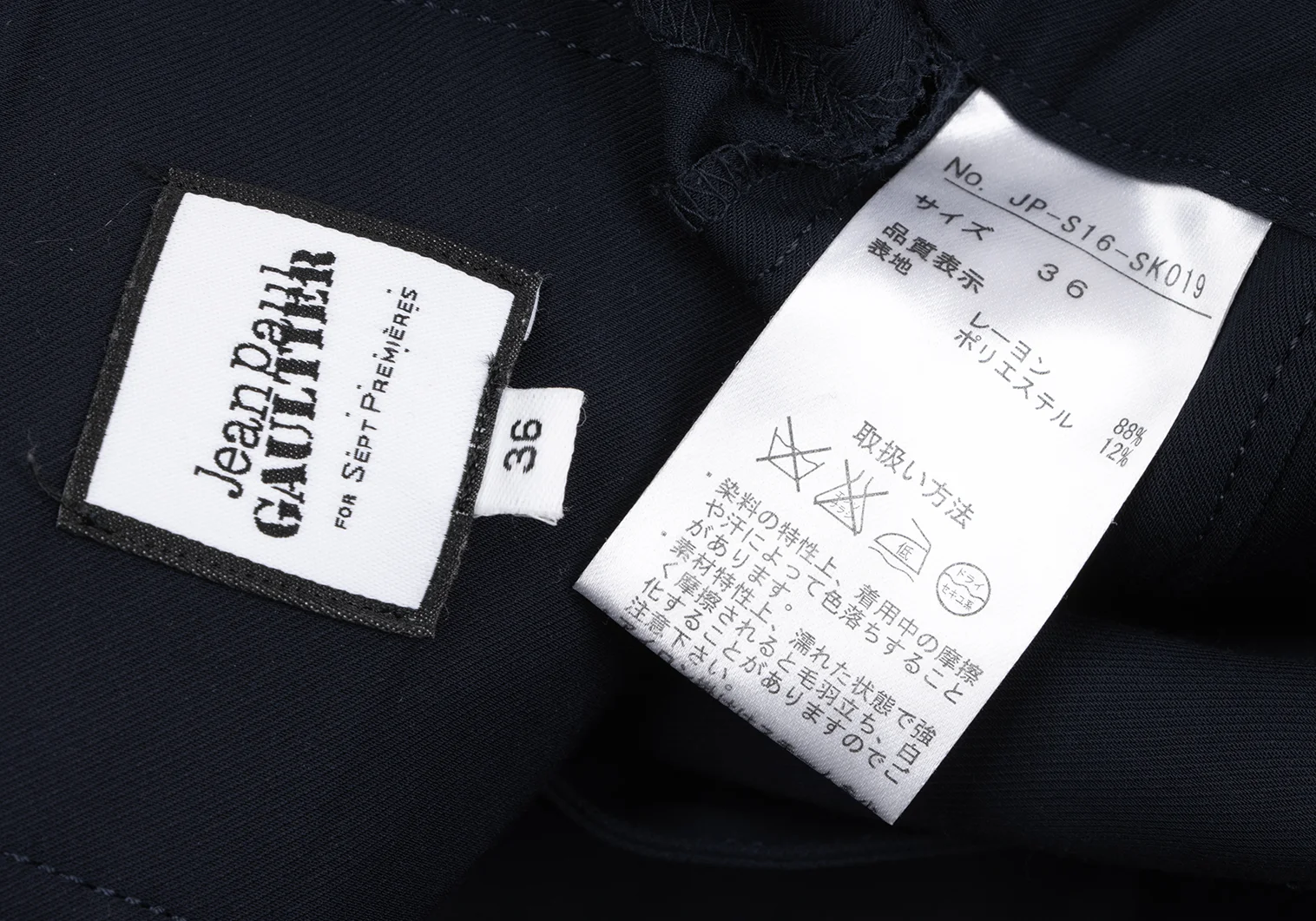 ジャンポールゴルチエ フォー セットプルミエJean Paul GAULTIER FOR SEPT PREMIERES レーヨンポリバックレースアップスカート 紺36