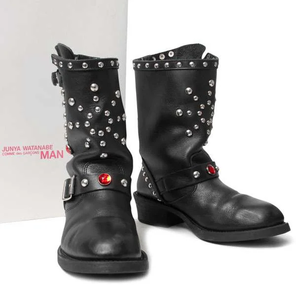 ジュンヤワタナベマンピンク コムデギャルソンJUNYA WATANABE MAN PINK スタッズハーフブーツ S(24.5) 黒S(24.5位)