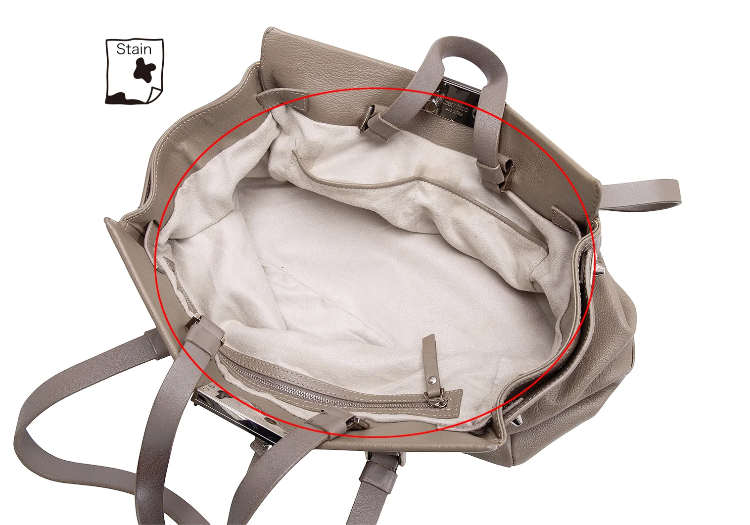 底角・金具に擦れ、ハンドルコバ割れ・キズ、内側に汚れがあります(写真参照)。その他目立ったダメージなどはありません。