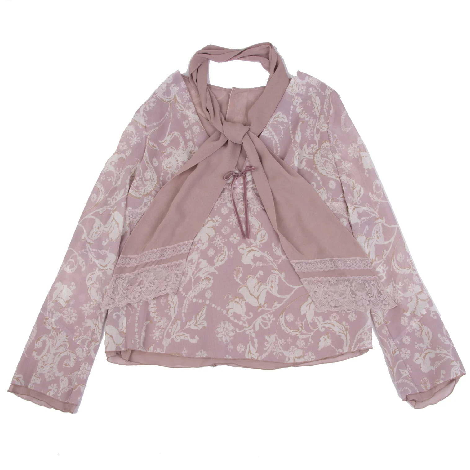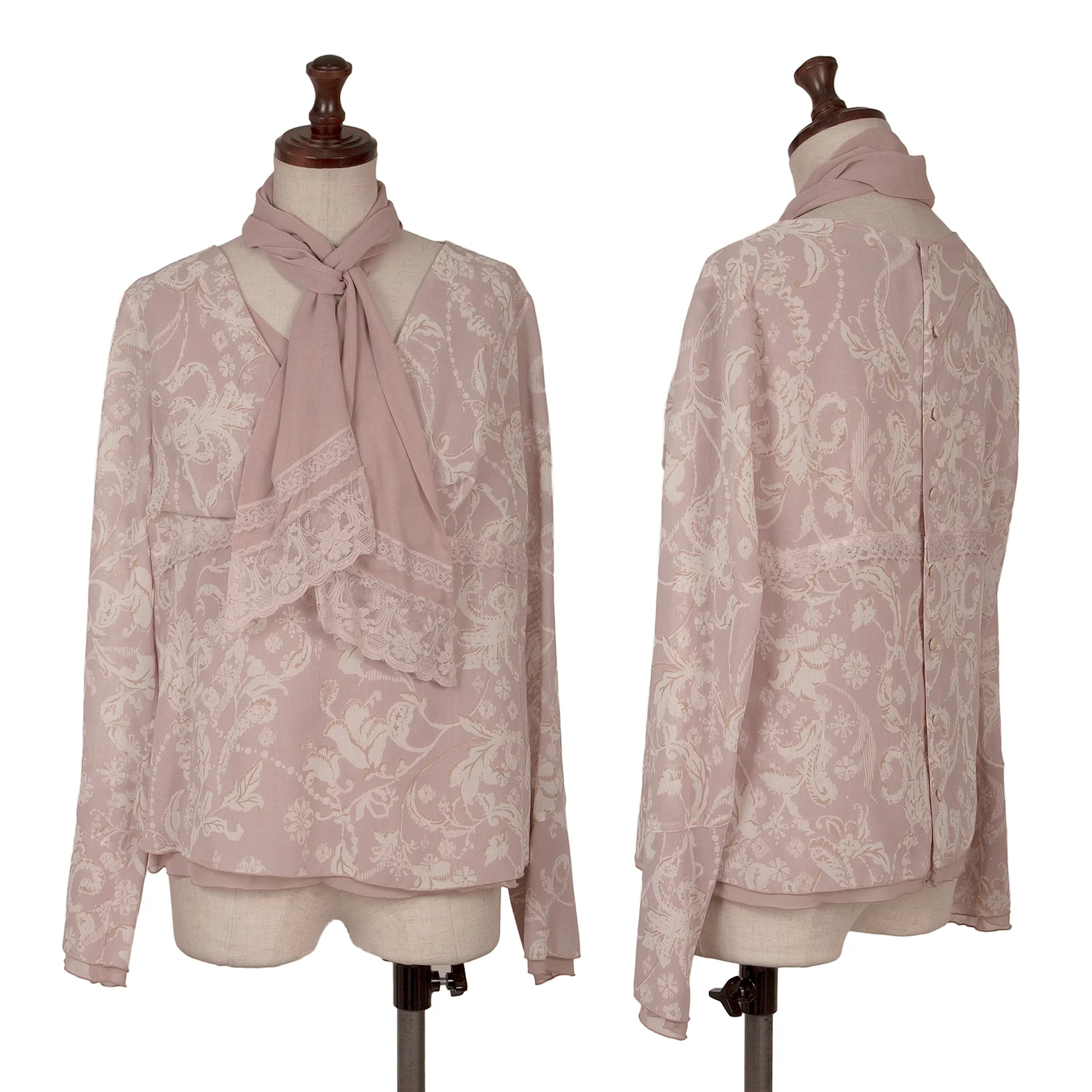 インゲボルグINGEBORG フラワープリントストール付きブラウス ピンクM