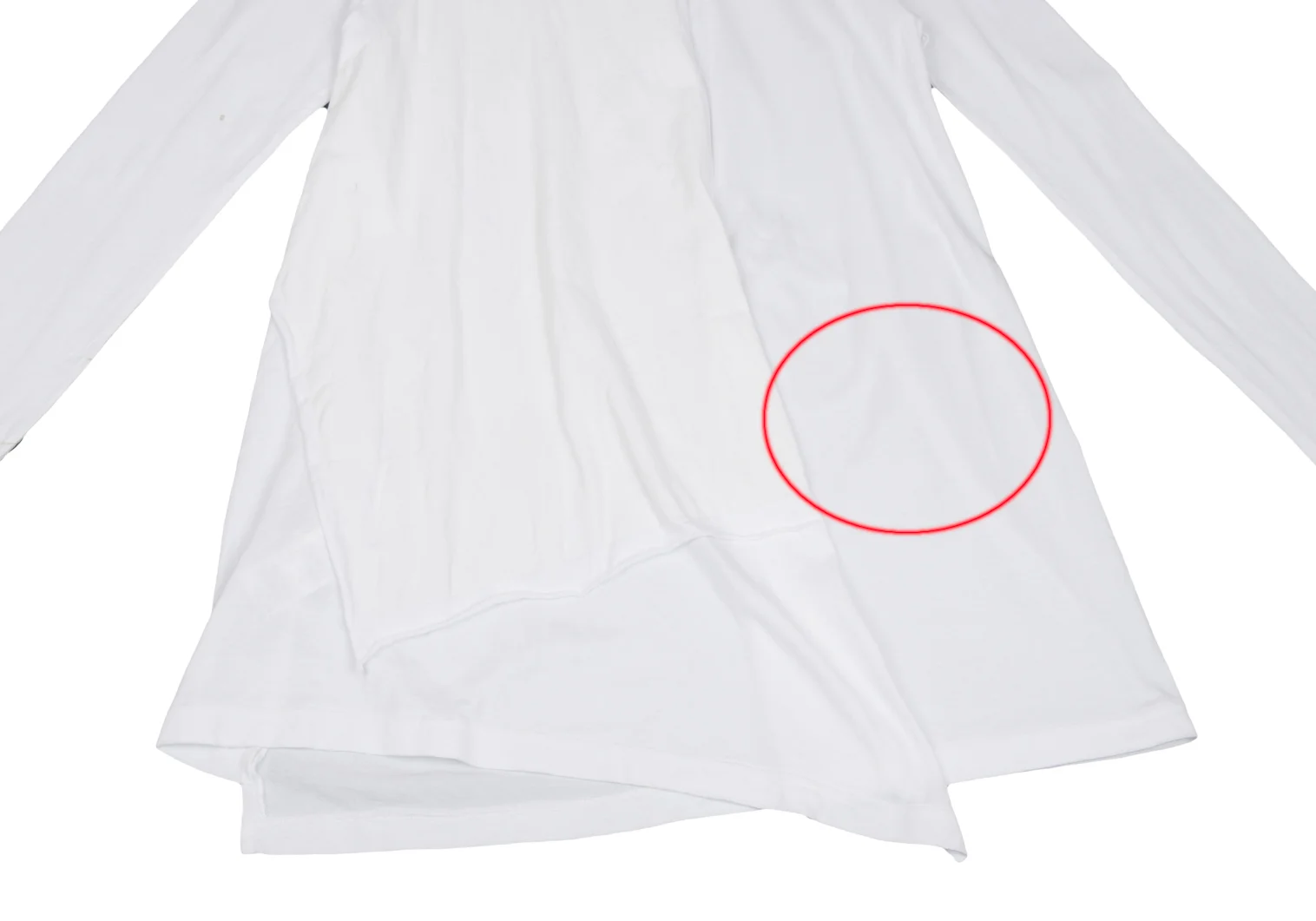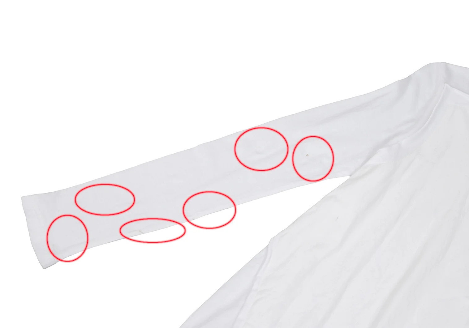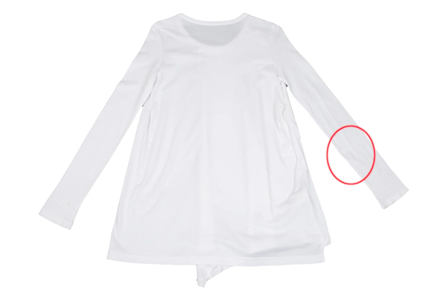 透け感があります。袖、前身頃にシミがあります(写真参照)。その他目立った汚れ、ほつれ等はありません。クリーニング済み。