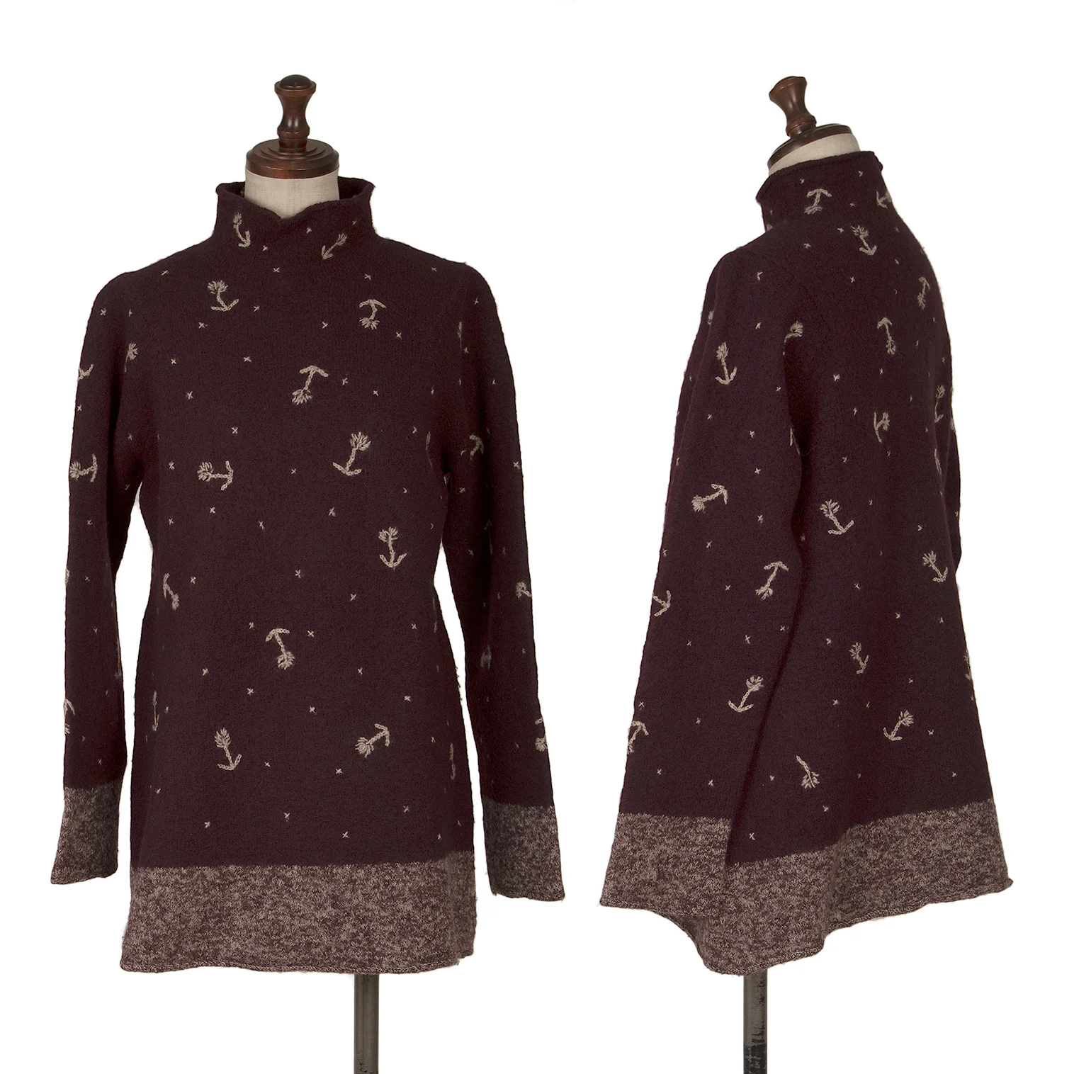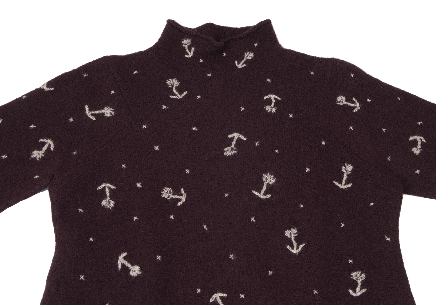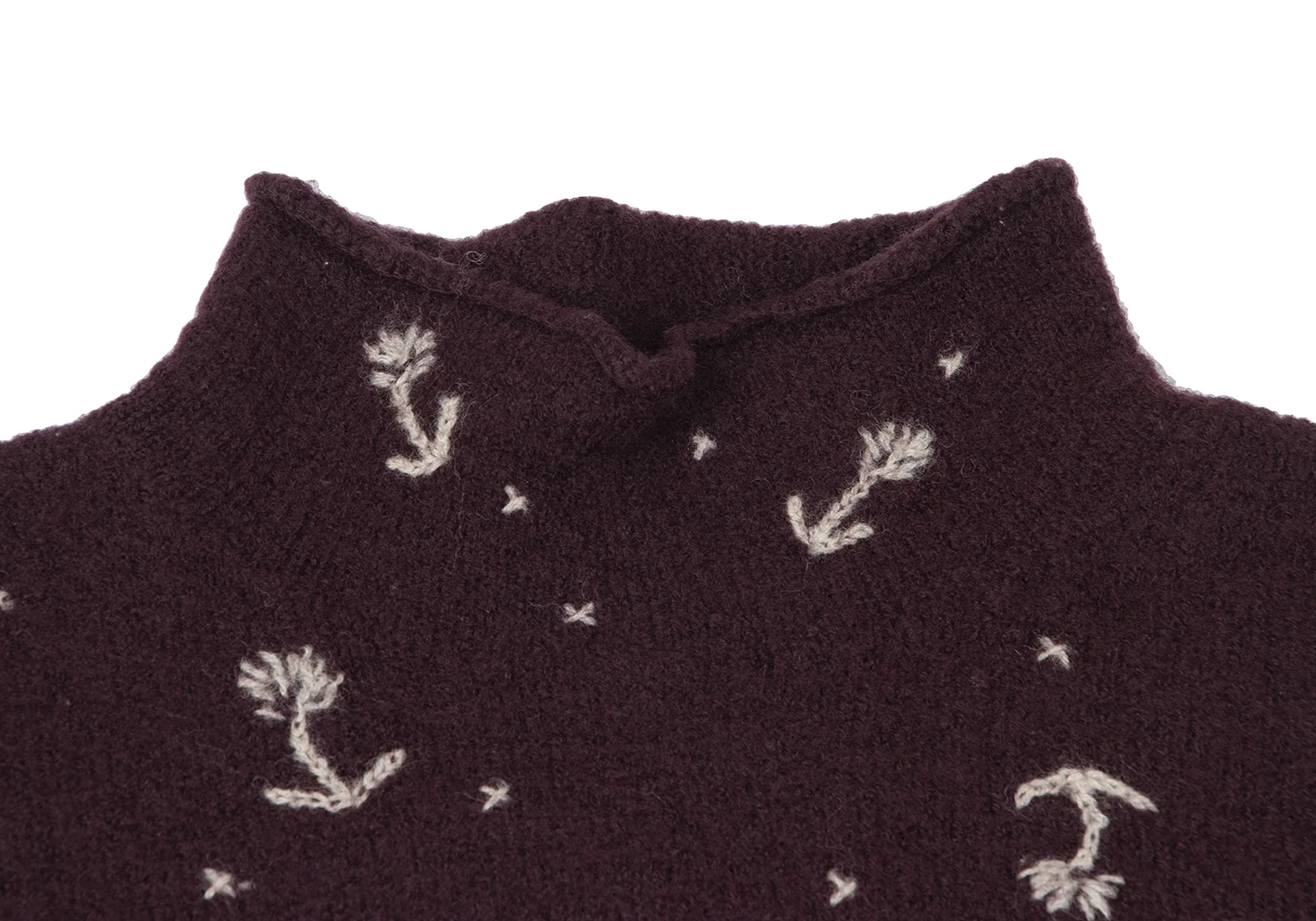 ツモリチサトTSUMORI CHISATO ウールフローラルステッチモックネックニット ボルドーM
