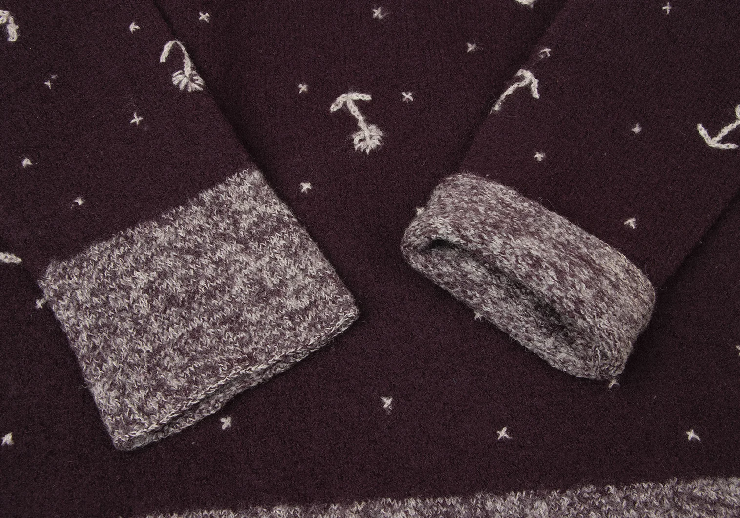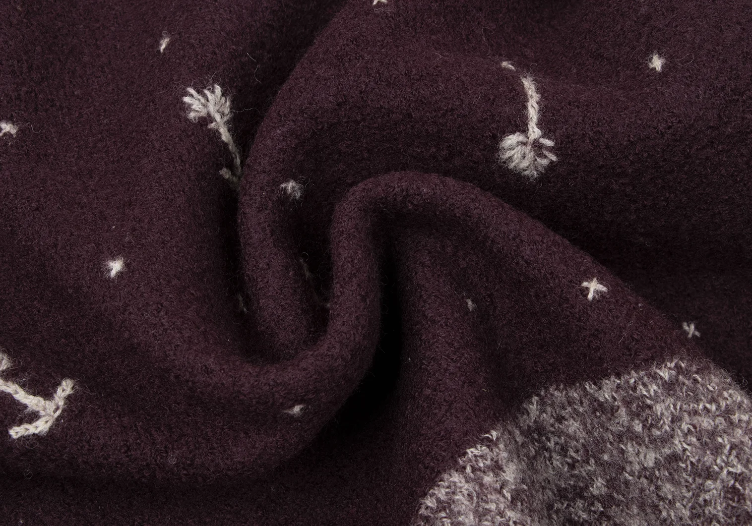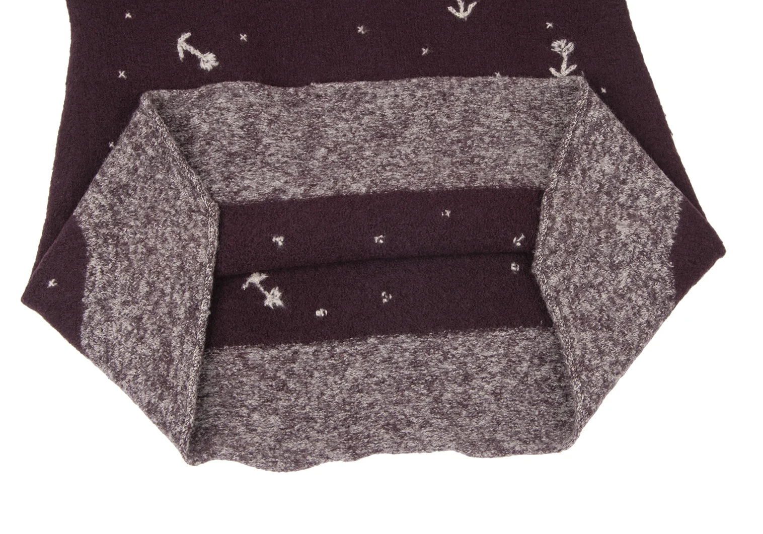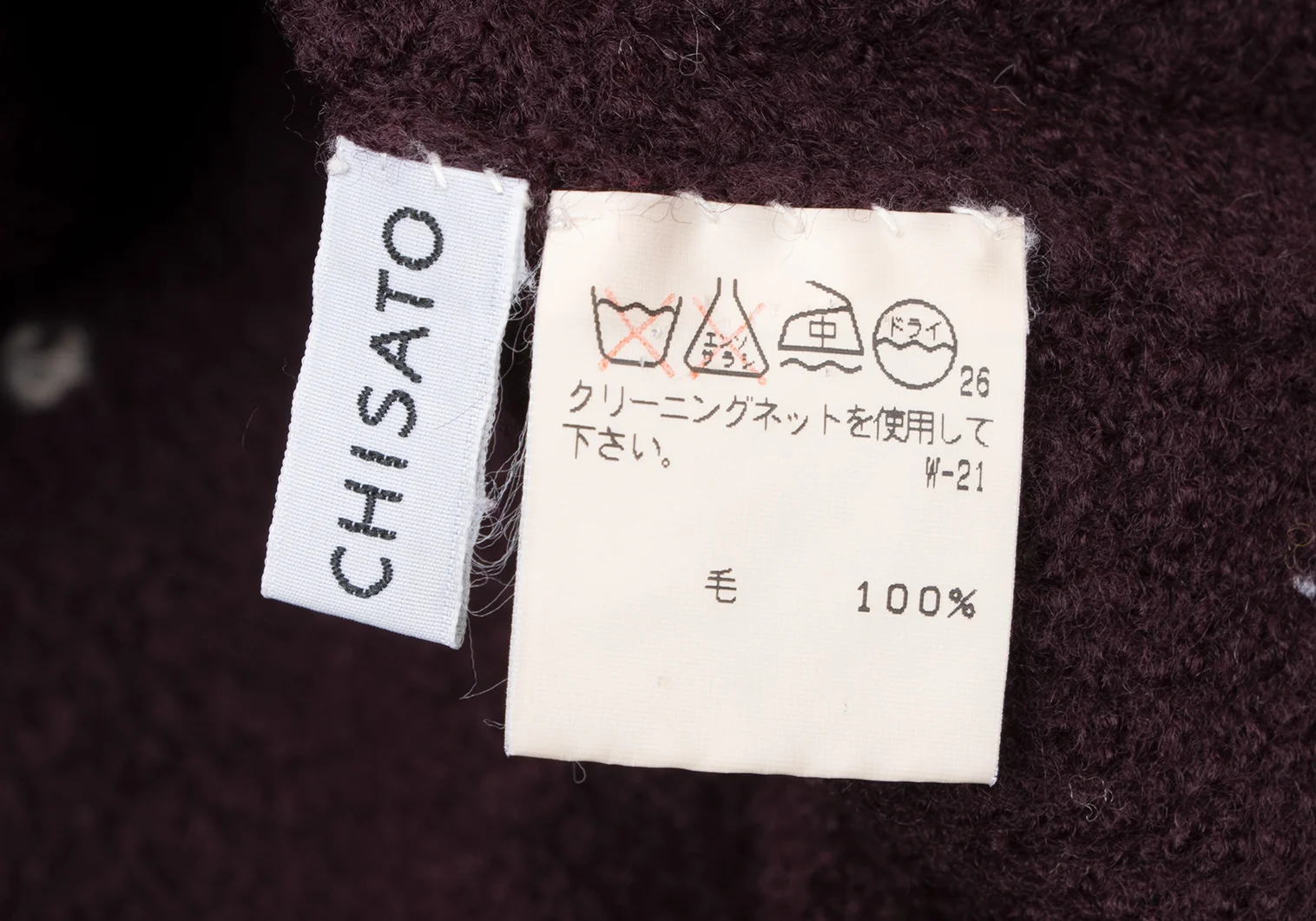 ツモリチサトTSUMORI CHISATO ウールフローラルステッチモックネックニット ボルドーM