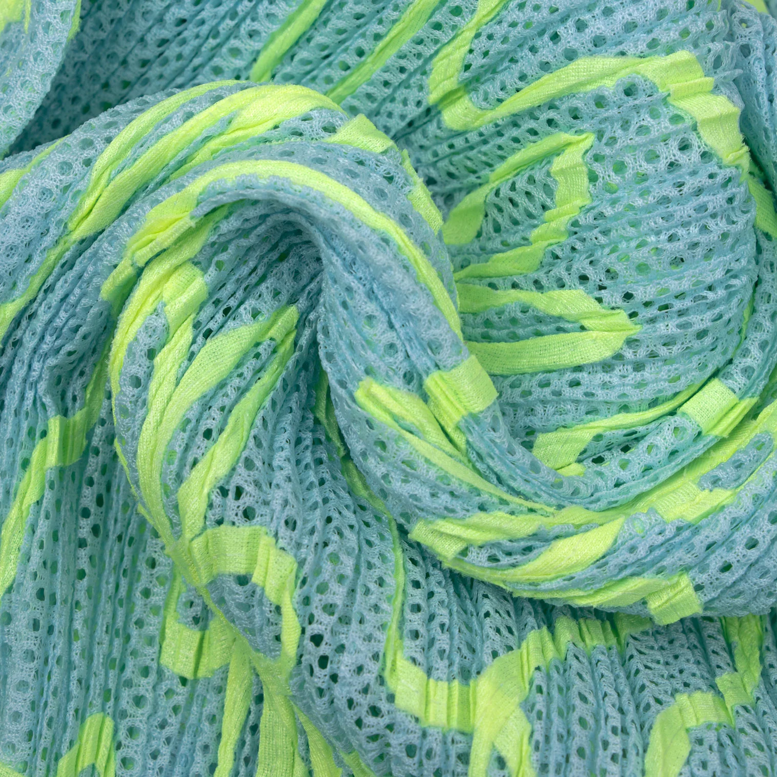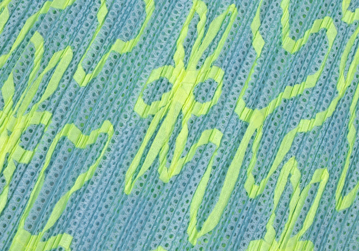 プリーツプリーズPLEATS PLEASE ネオンテーピングメッシュスカート 水色黄緑2