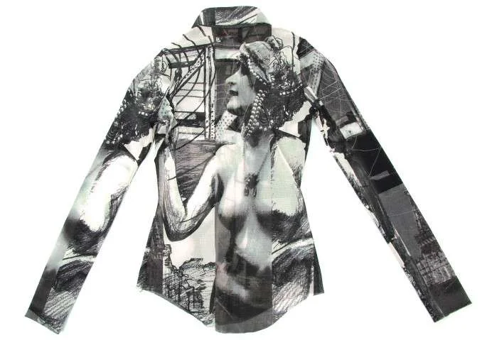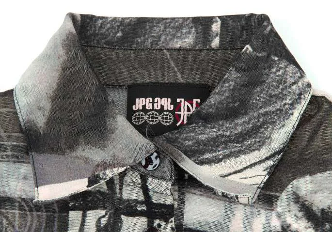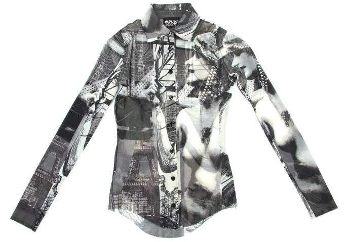 ジャンポールゴルチエJean Paul GAULTIER パワーネットプリントシャツ グレー40