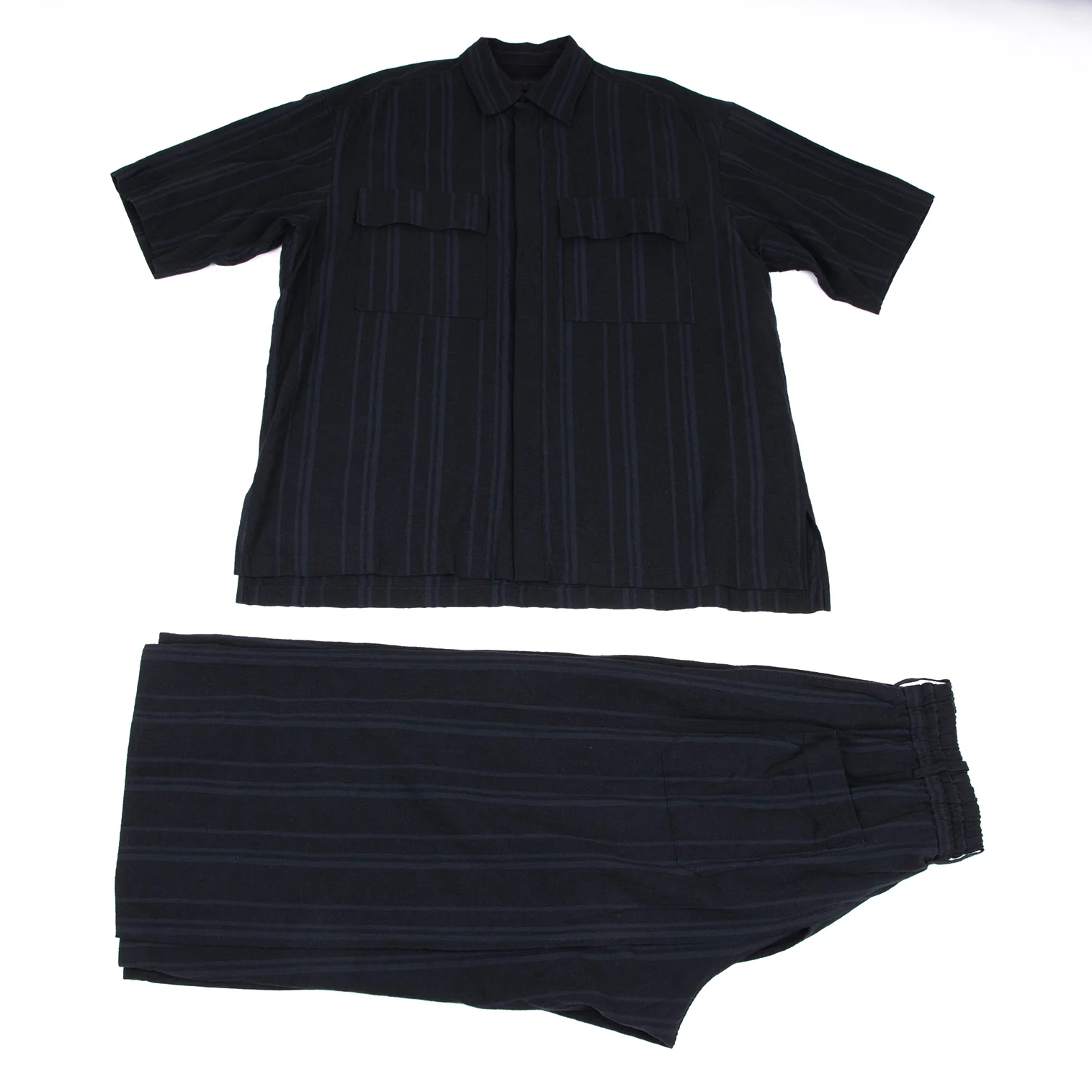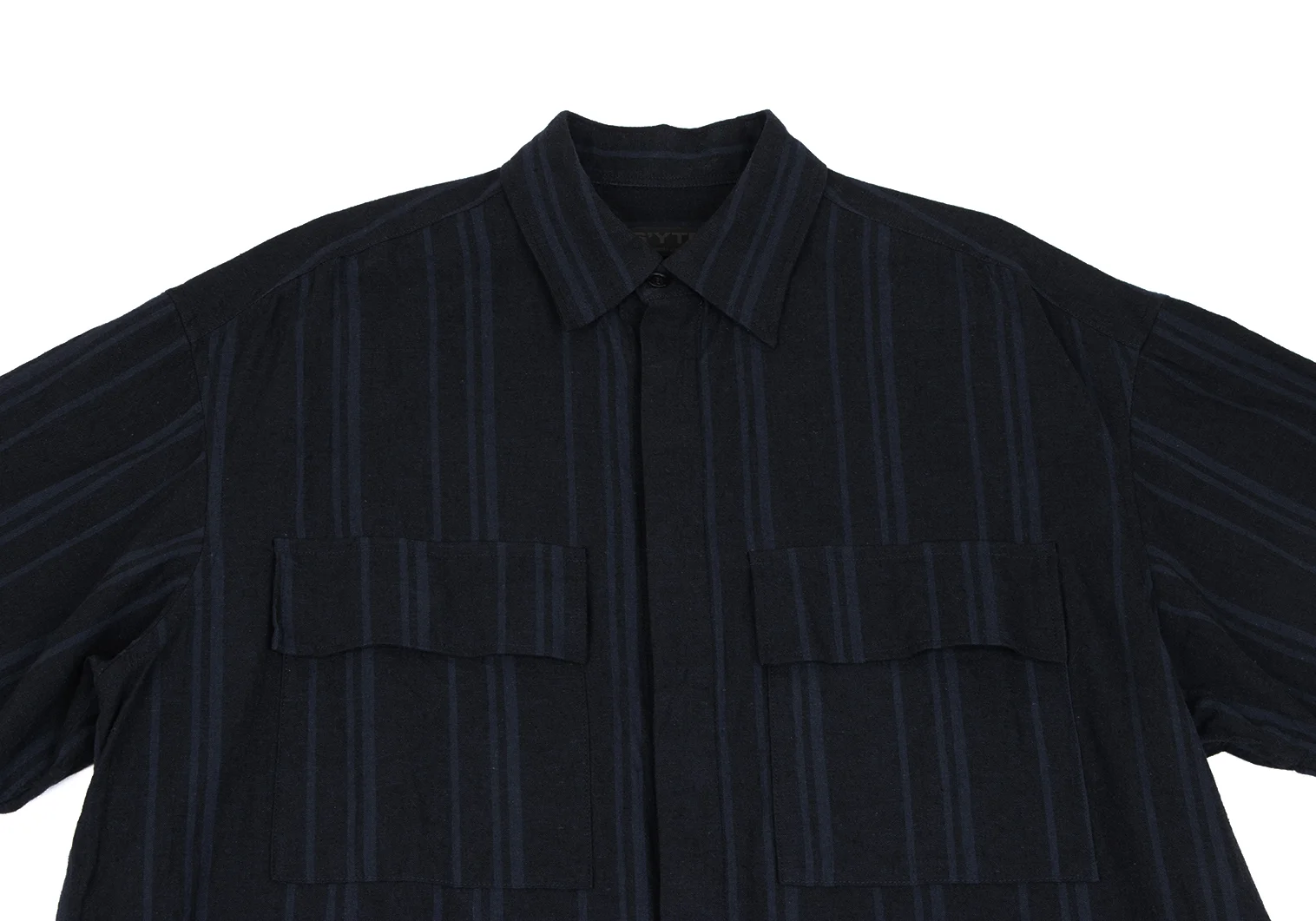 サイトS'YTE リネンコットンストライプ半袖シャツ 紺青3