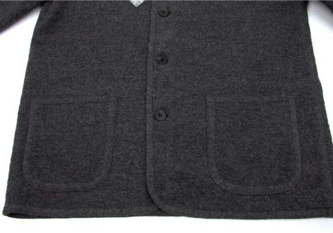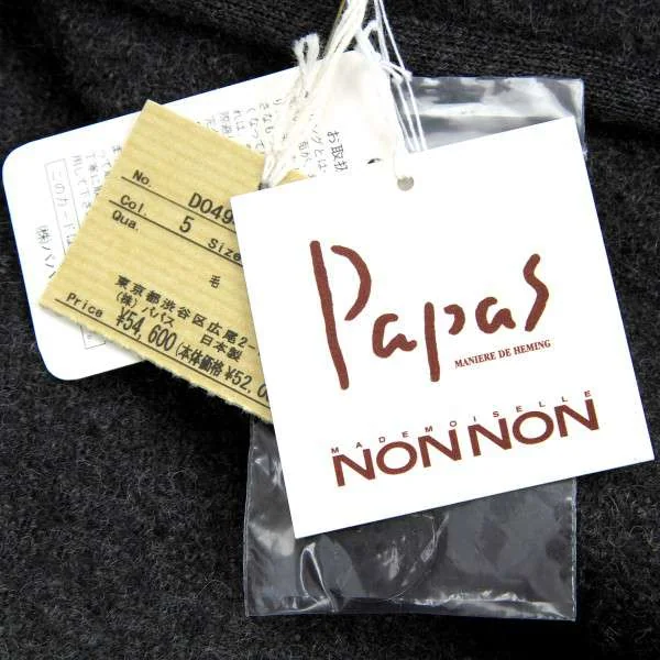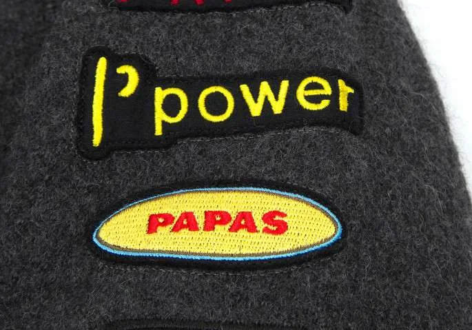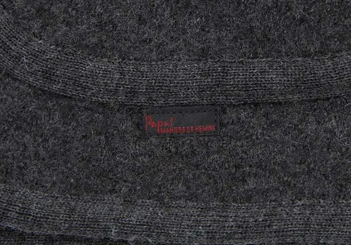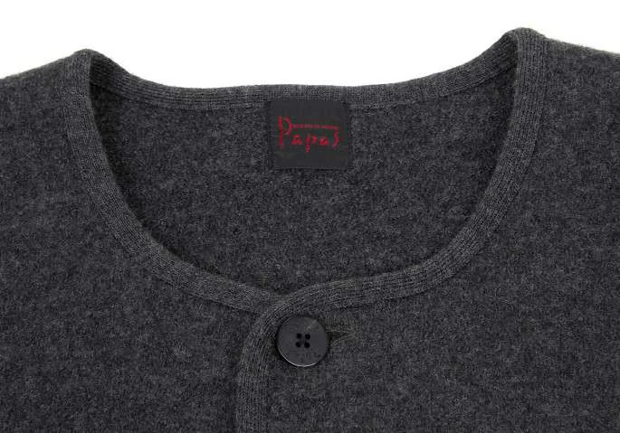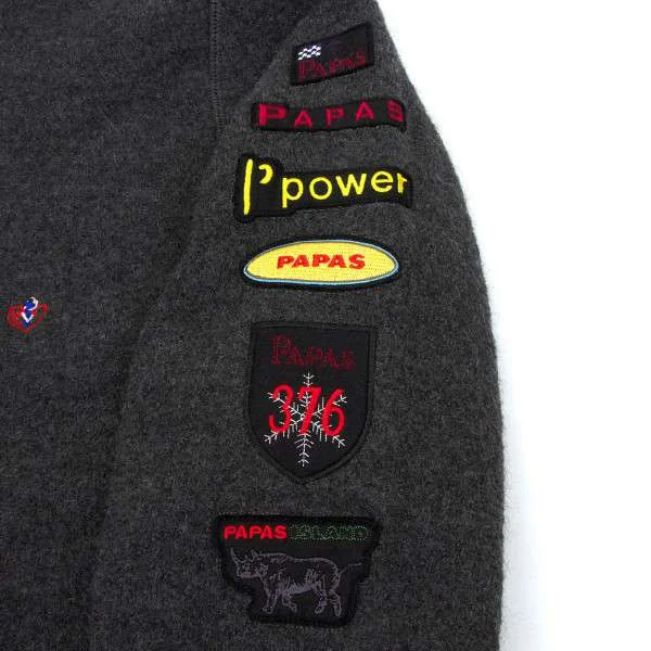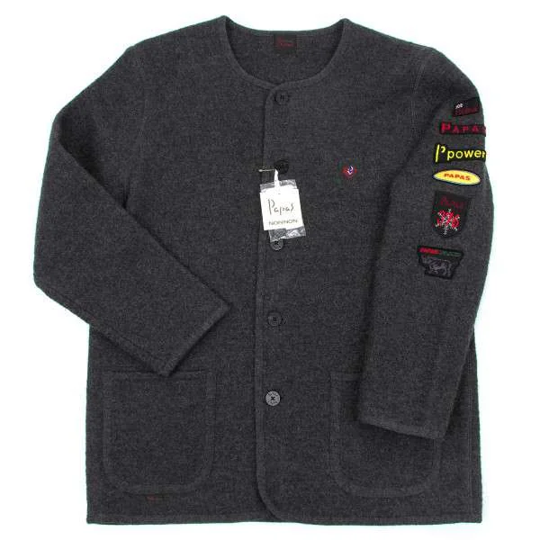 パパスPAPAS ワッペンデザインウールカーディガンジャケット チャコールM