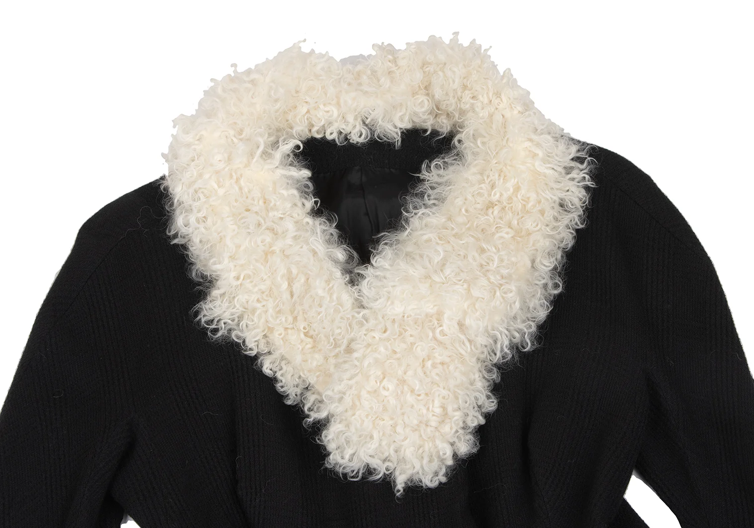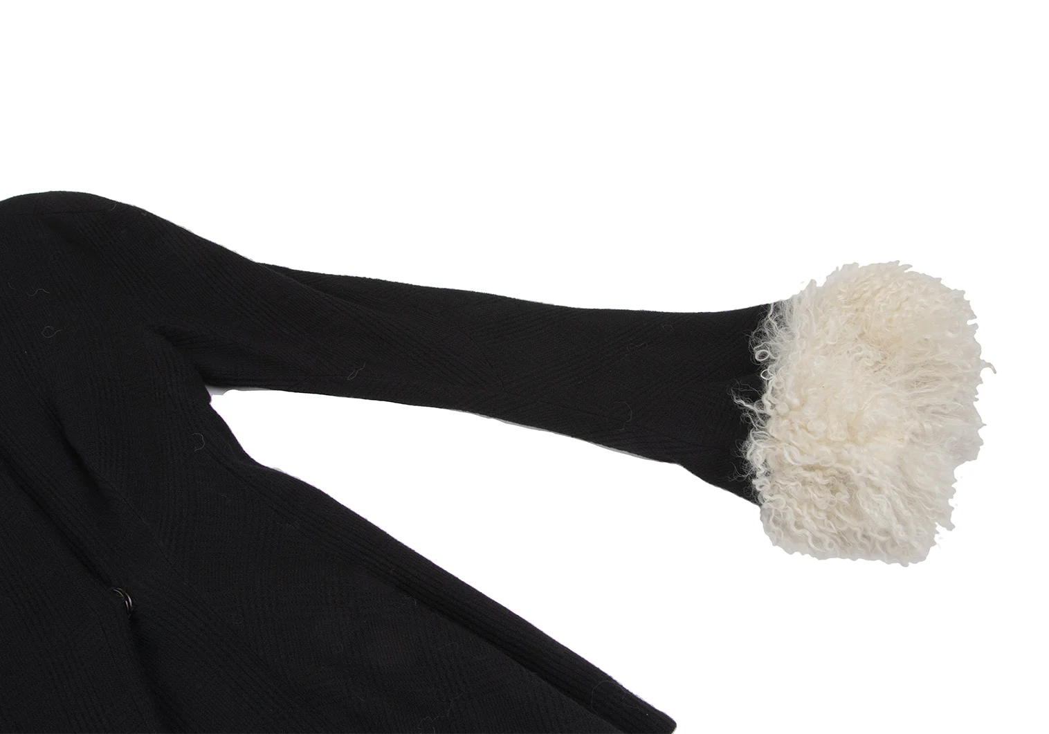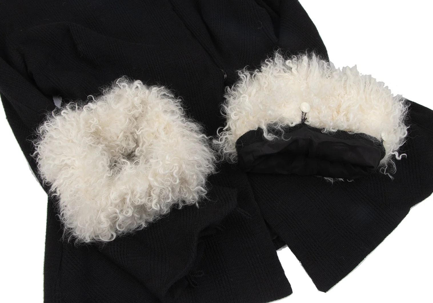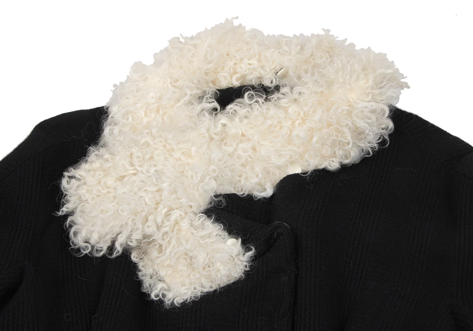 ヨウジヤマモトファムYohji Yamamoto FEMME ウール混シャギー着脱チェック織りニットジャケット 黒オフS