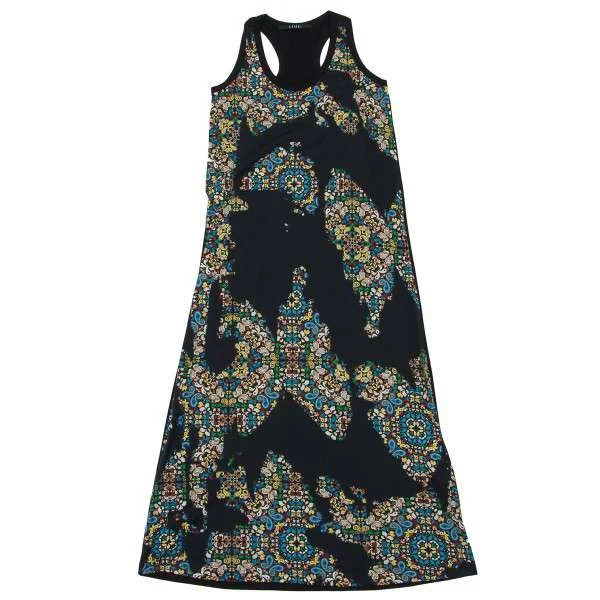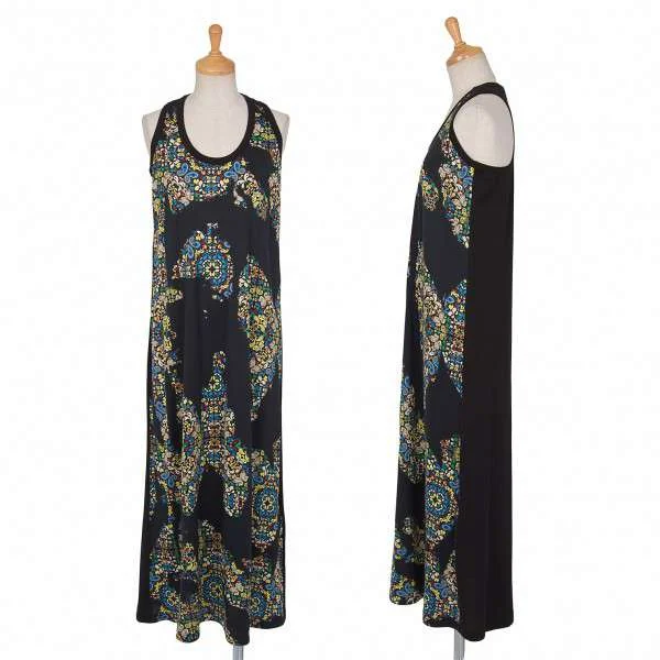 リミフゥLIMI feu レーヨンコットンプリントノースリーブワンピース 黒S