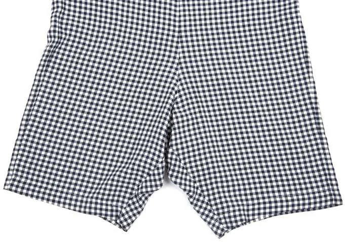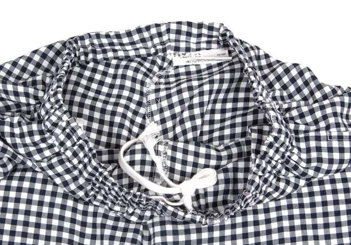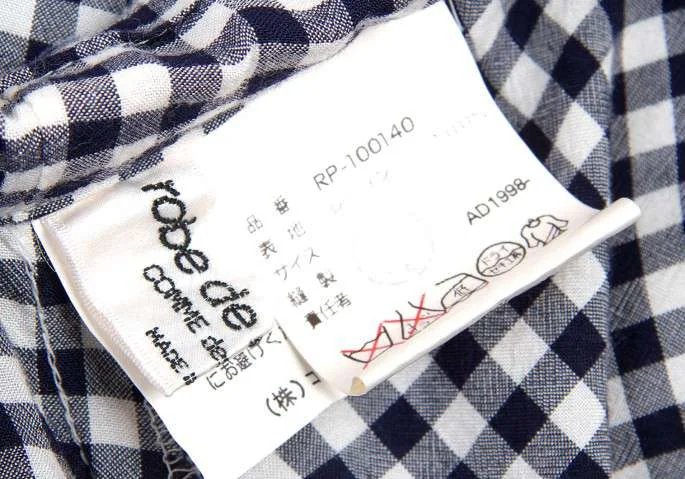 ローブデシャンブレ コムデギャルソンrobe de chambre COMME des GARCONS ギンガムチェックレーヨンサルエルパンツ 紺白M位
