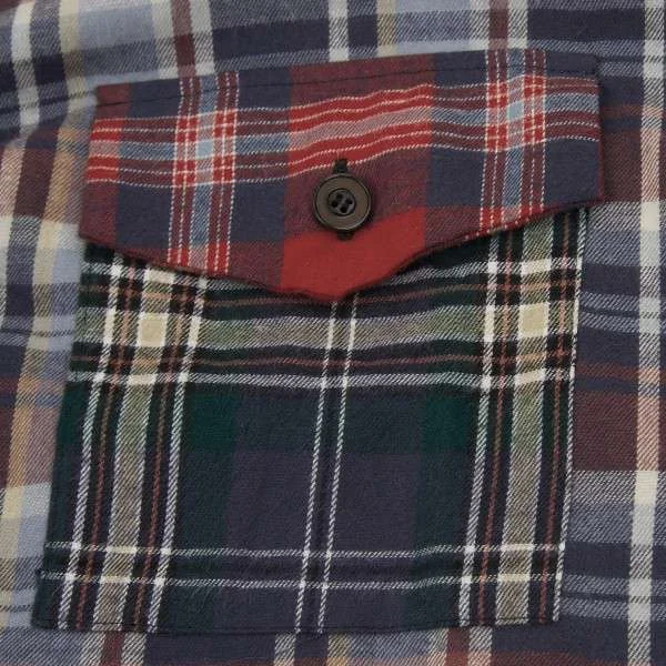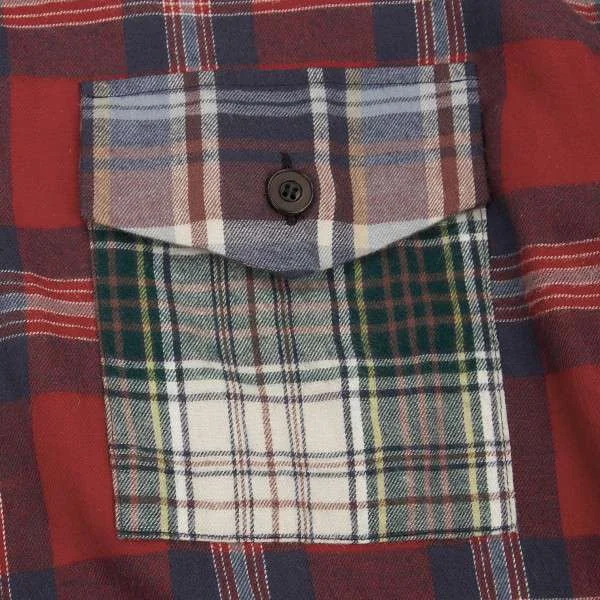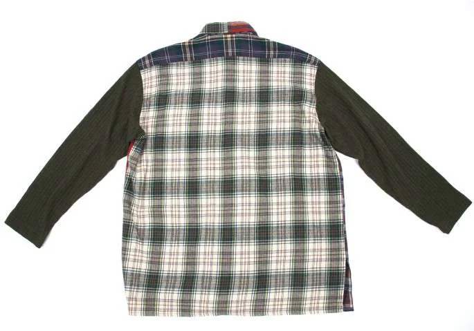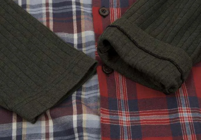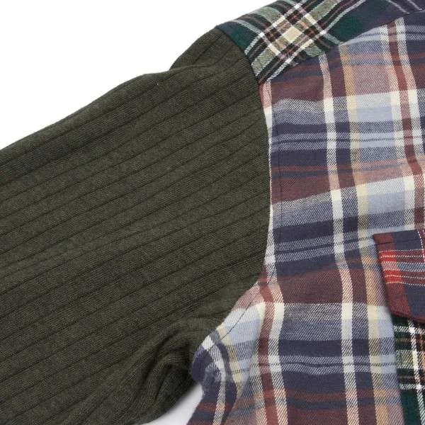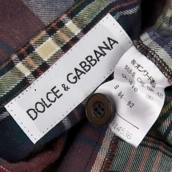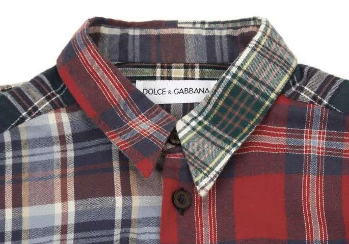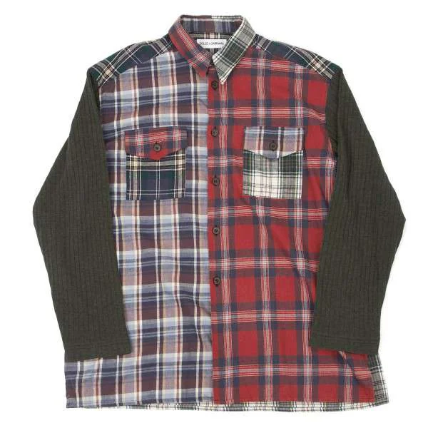 ドルチエアンドガッバーナDOLCE&GABBANA 袖リブ切り替えチェックシャツ カーキ赤青48