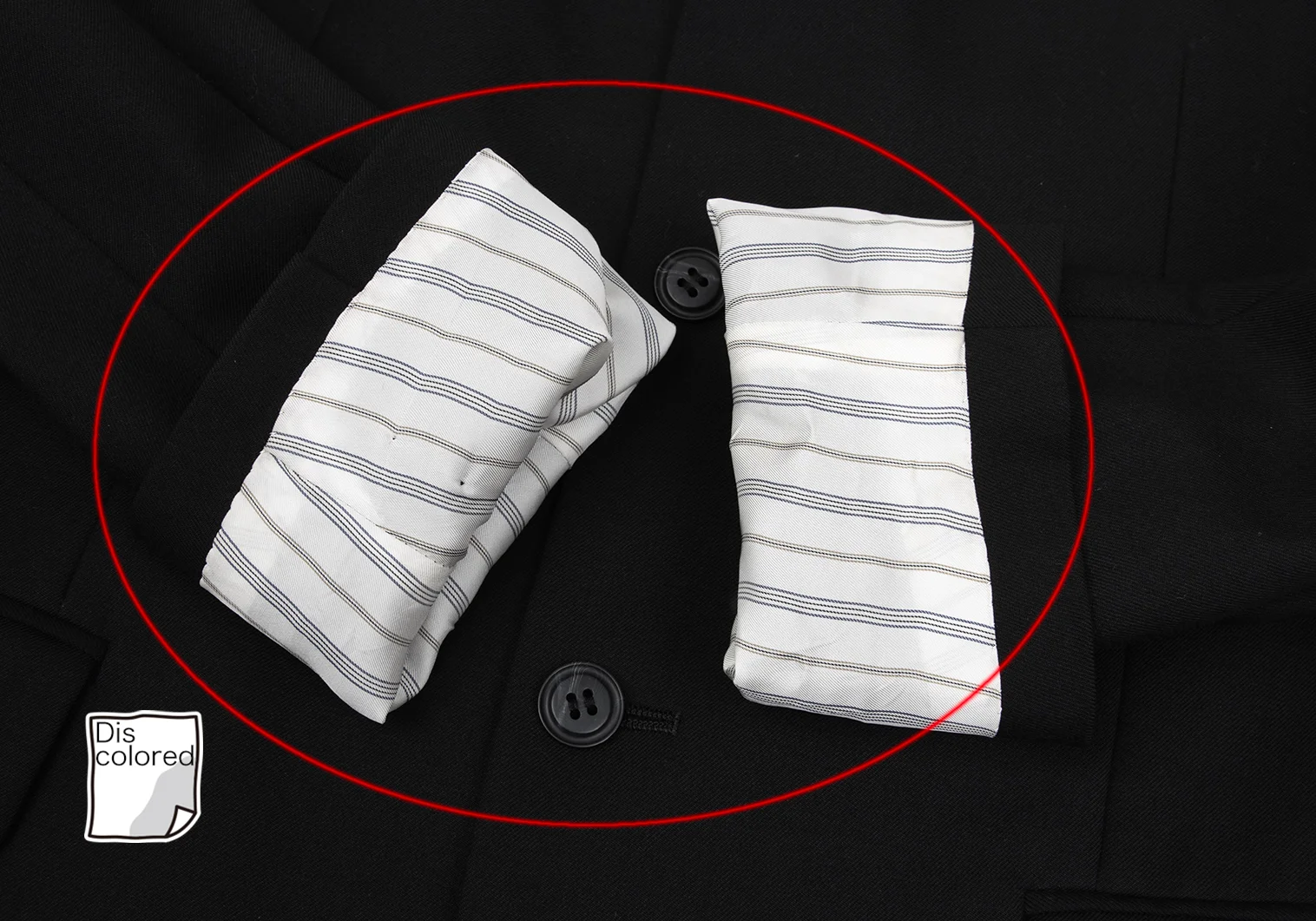 ジャケット:肩パッドあり。袖裏地に薄変色、前裾に引っ掛けがあります。パンツ:前右足に引っ掛けがあります。(写真参照)その他目立ったシミ、汚れ、ほつれ等なくいい状態です。クリーニング済み。