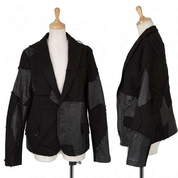 ワイズY’s パッチワークレザーコットンジャケット 黒2