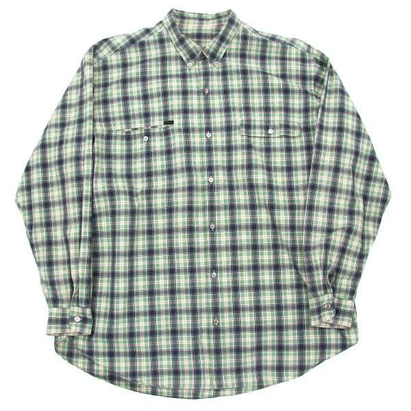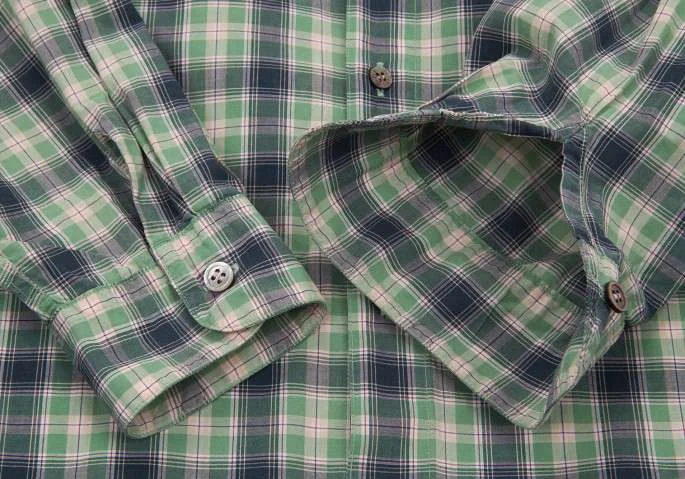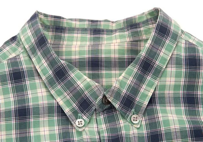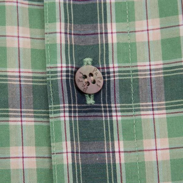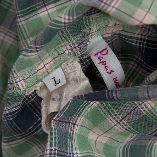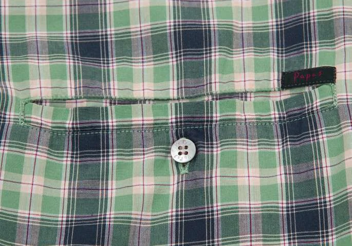 パパスPAPAS ボタンダウンコットンチェックシャツ 緑L