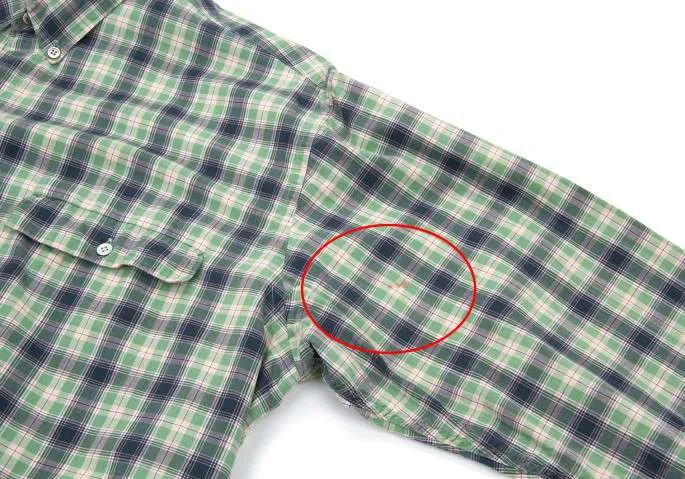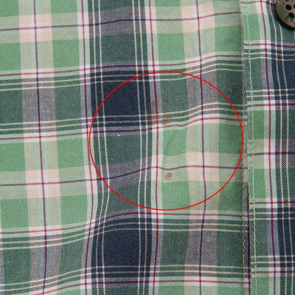 左袖と前身頃裾にシミが有ります(写真参照)。袖口のボタン交換しています(PAPASのボタンではありません。)クリーニング済み