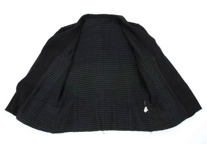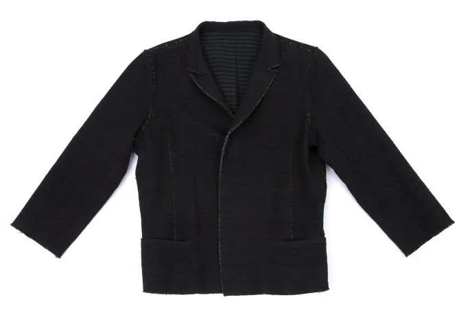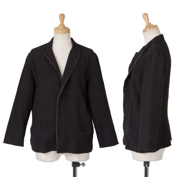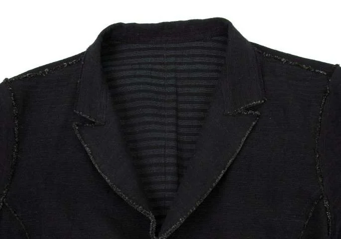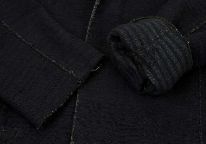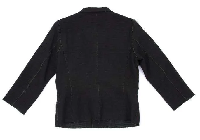 【SALE】ヨーガンレールJURGEN LEHL 裏ボーダー切りっぱなしコットンシルクジャケット 黒グリーンM