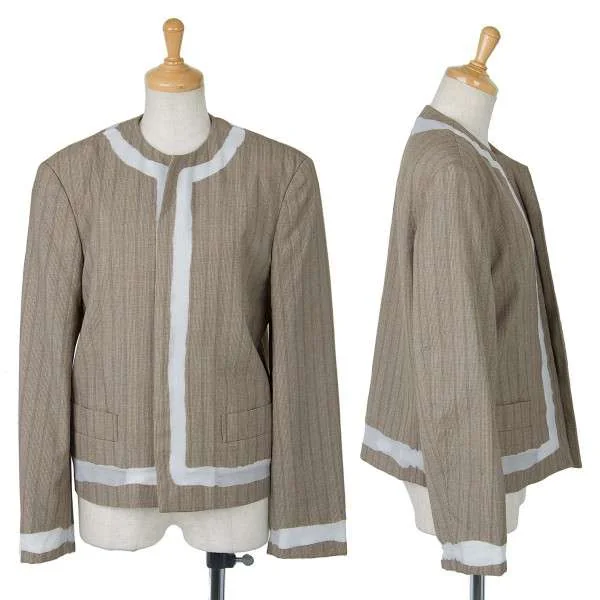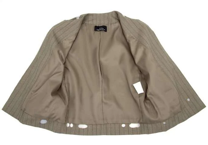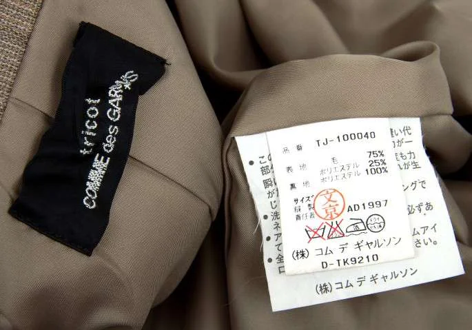 トリコ コムデギャルソンtricot COMME des GARCONS ノーカラーウールポリガーゼラインセットアップスーツ モカベージュM位