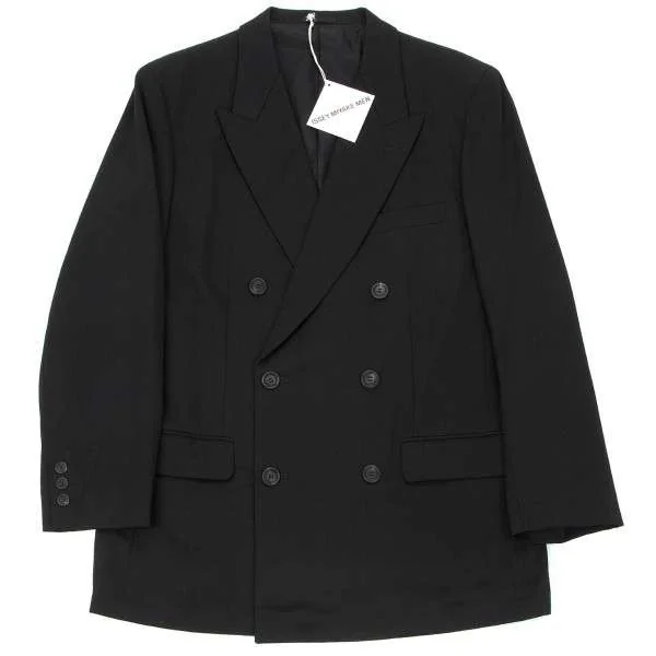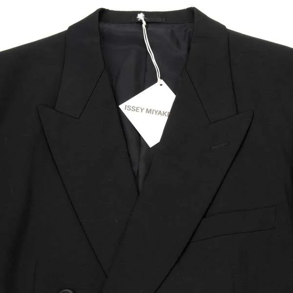 イッセイミヤケメンISSEY MIYAKEMEN ウールギャバピークドラペルダブルジャケット 黒M