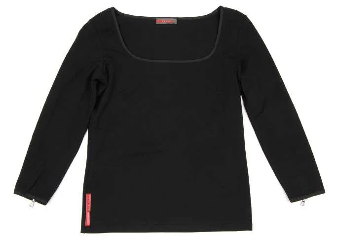 プラダスポーツPRADA SPORT スクエアネックパイピングカットソー 黒M