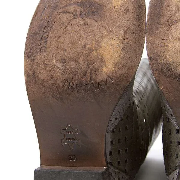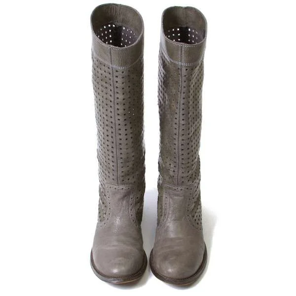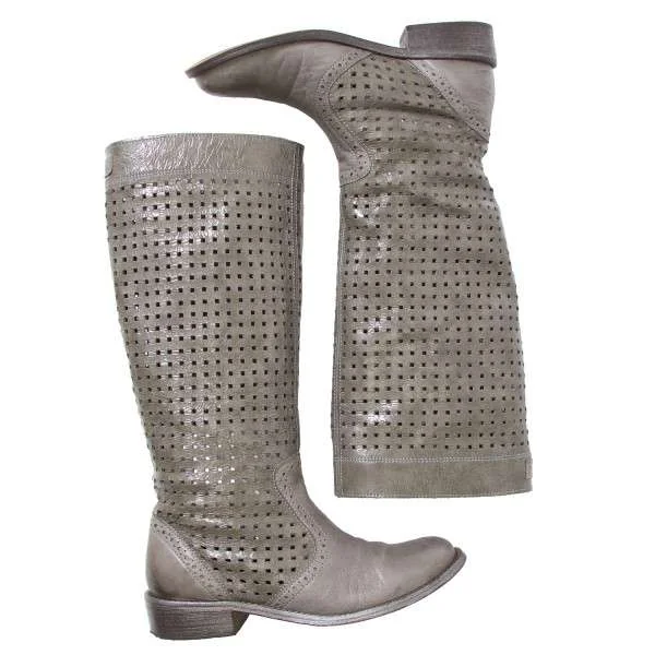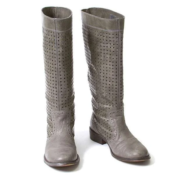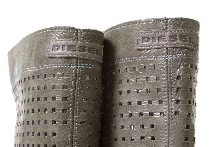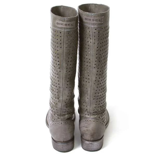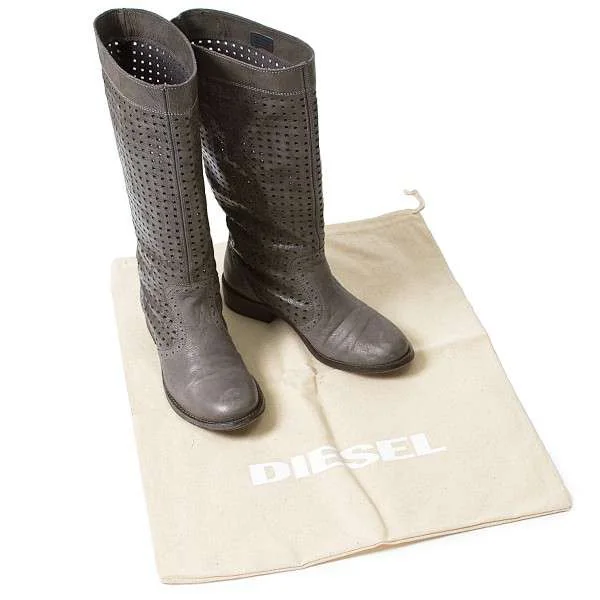 ディーゼルDIESEL パンチングレザーロングブーツ グレー22.5