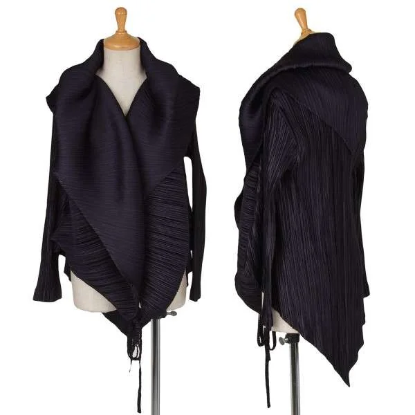 プリーツプリーズPLEATS PLEASE 襟変形カーディガン 紺M位