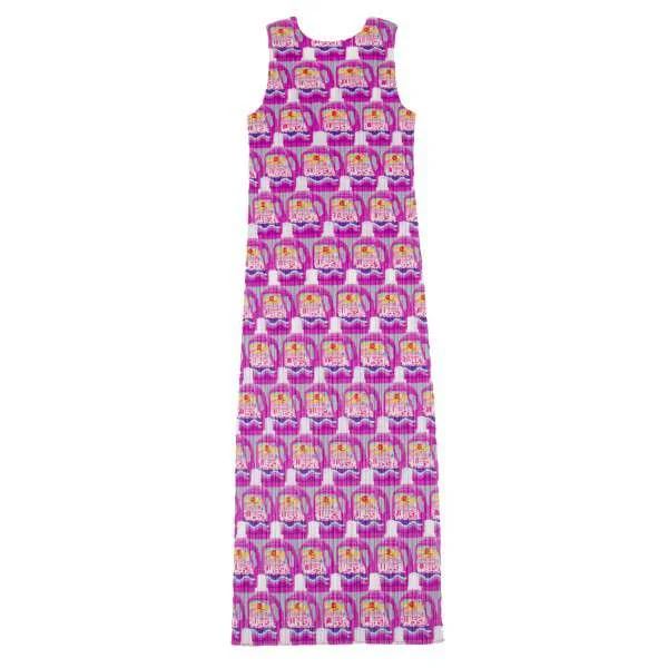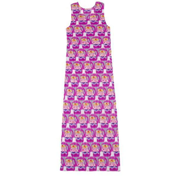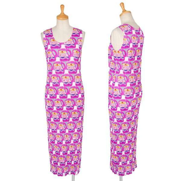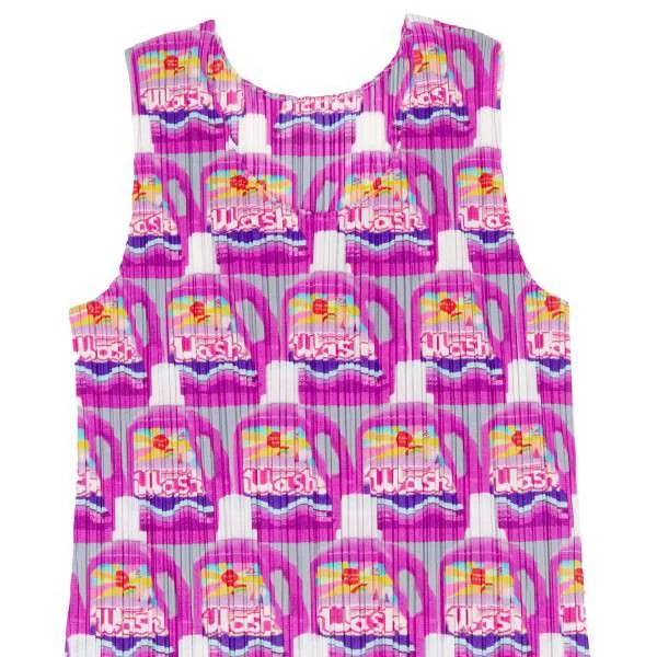 プリーツプリーズPLEATS PLEASE Wash洗剤プリントノースリーブワンピース パープル3