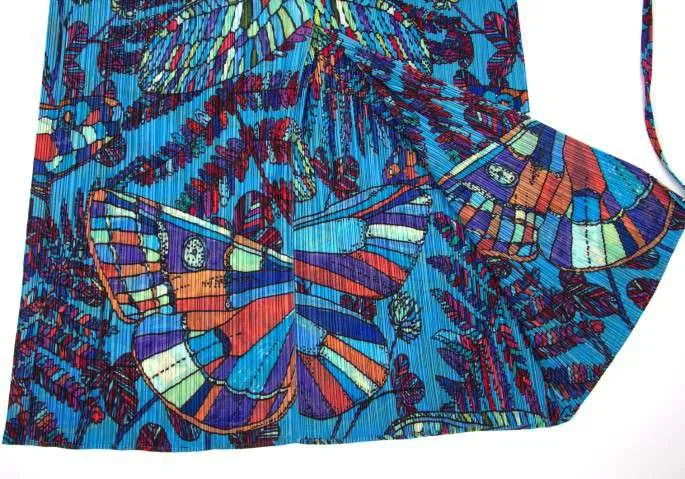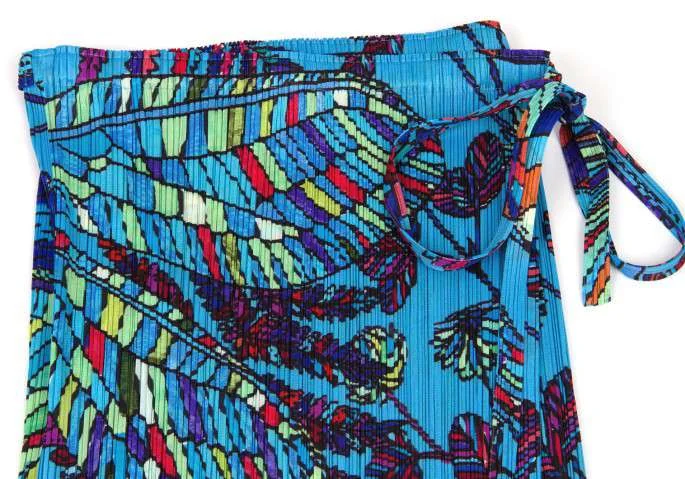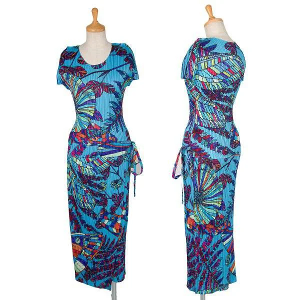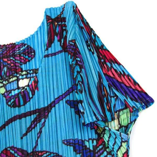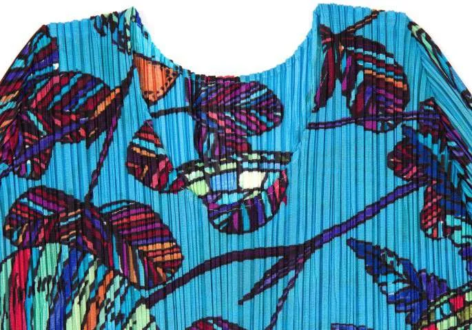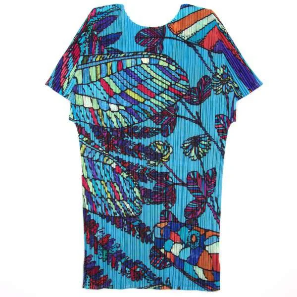 プリーツプリーズPLEATS PLEASE カラフル葉っぱプリント セットアップスーツ ブルー3
