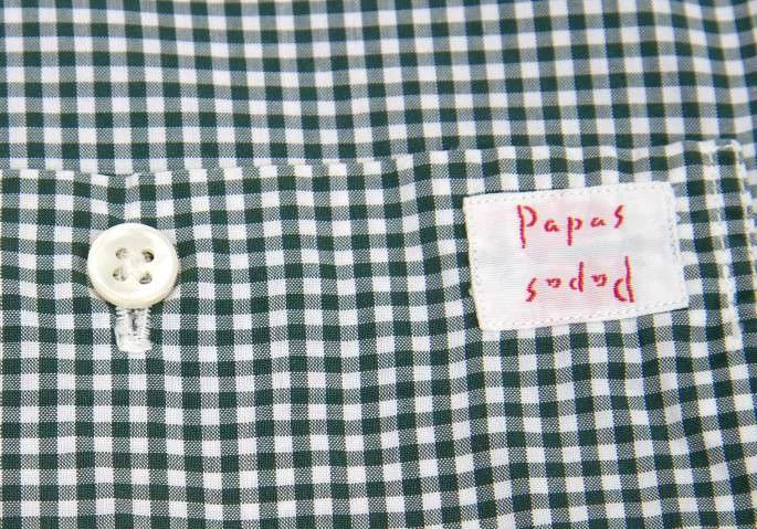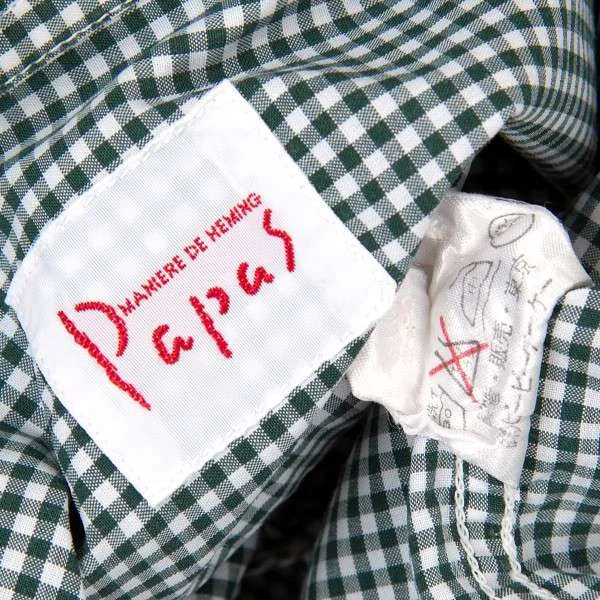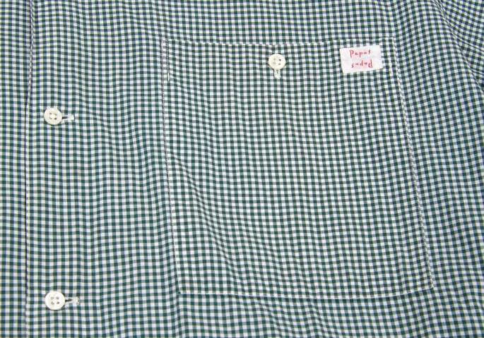 残念!!パパスPAPAS ギンガムチェックコットンシャツ 深緑L