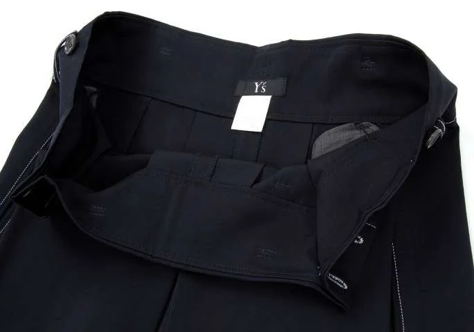 ワイズ Y's ステッチウールギャバプリーツパンツ ネイビーM位