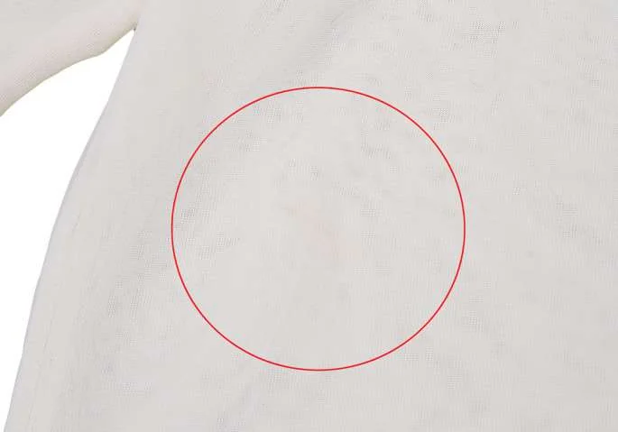 前見頃に薄シミ、右袖に薄汚れがあります(写真参照)ほつれ等はないです。クリーニング済み