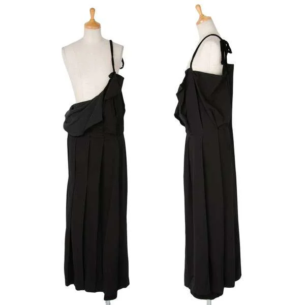 ヨウジヤマモトファムYohji Yamamoto FEMME ベロアドッキングプリーツアシメワンピース 黒2