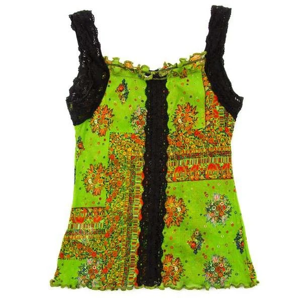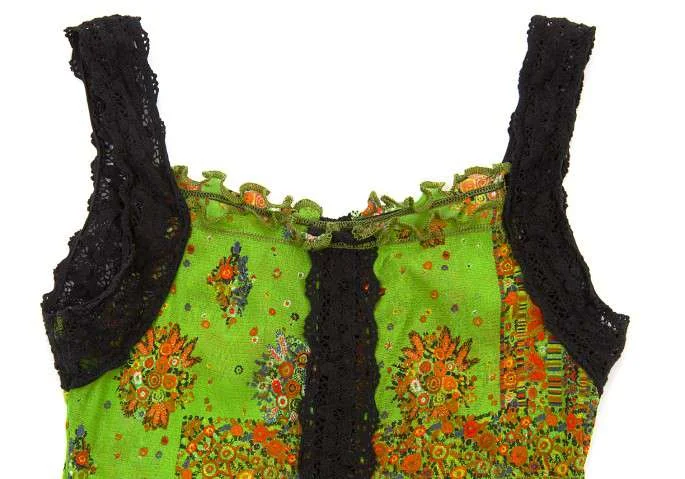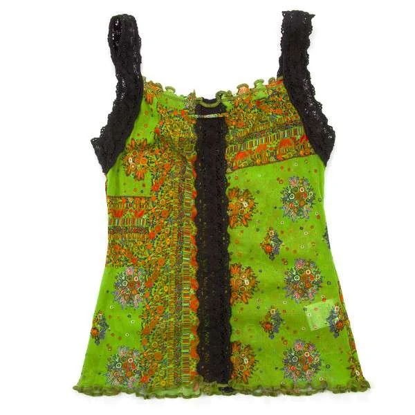 ジャンポールゴルチェJean Paul GAULTIER 透かし編みパワーネットキャミソール 黄緑40