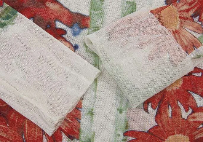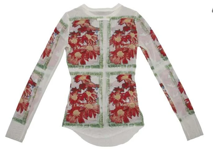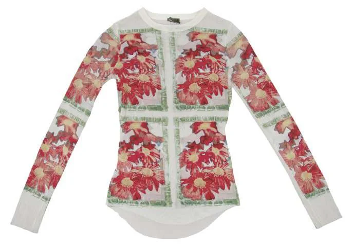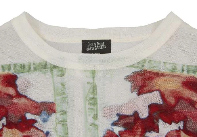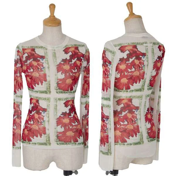 ジャンポールゴルチエ ファムJean Paul GAULTIER FEMME パワーネット花柄カットソー 白赤40