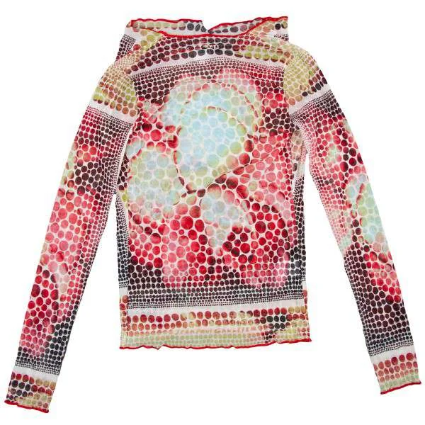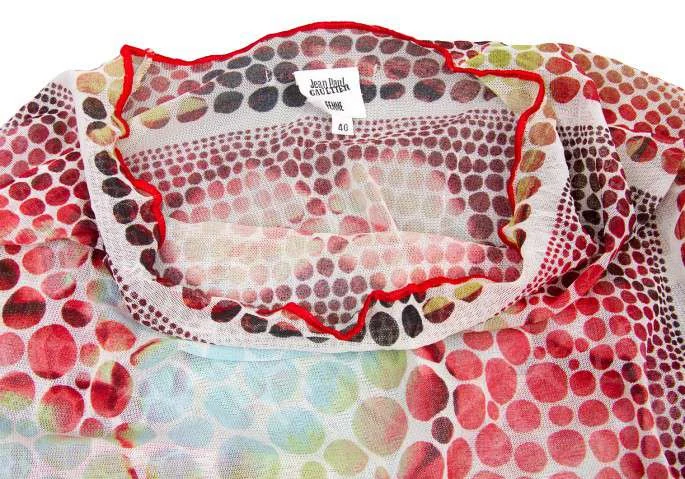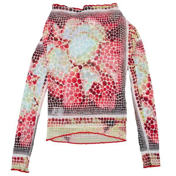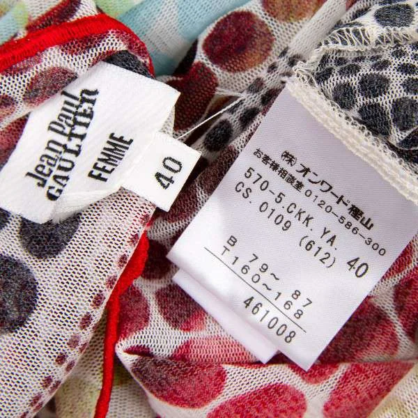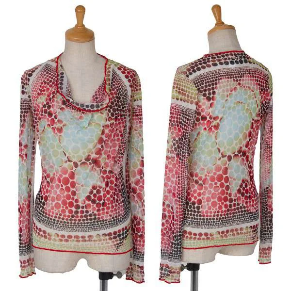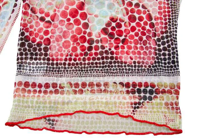 ジャンポールゴルチエ ファム Jean Paul GAULTIER FEMME パワーネットドレープカラードット柄カットソー 白黒赤40